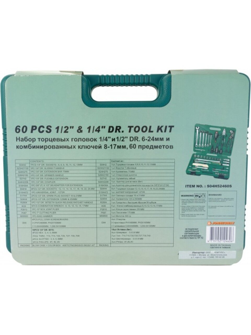 Набор инструментов Jonnesway S04H52460S 60 предметов. Инструменты, входящие в комплектацию наборов Jonnesway, полностью соответствуют требованиям ГОСТа, а также отвечают высоким международным стандартам качества.