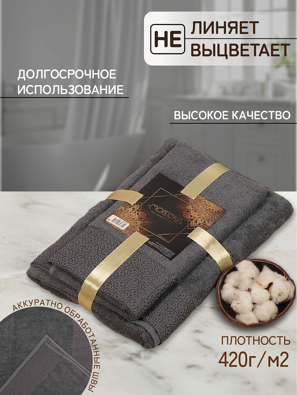 Вы можете приобрести «Набор полотенец 2 шт, 50х90, 70х140 см, 100% хлопок, 420 г/м2, Silvano, Мореска, темно-серый, Узбекистан» и другие товары в нашем интернет-магазине в Ставрополе по низким ценам и с бесплатным самовывозом.