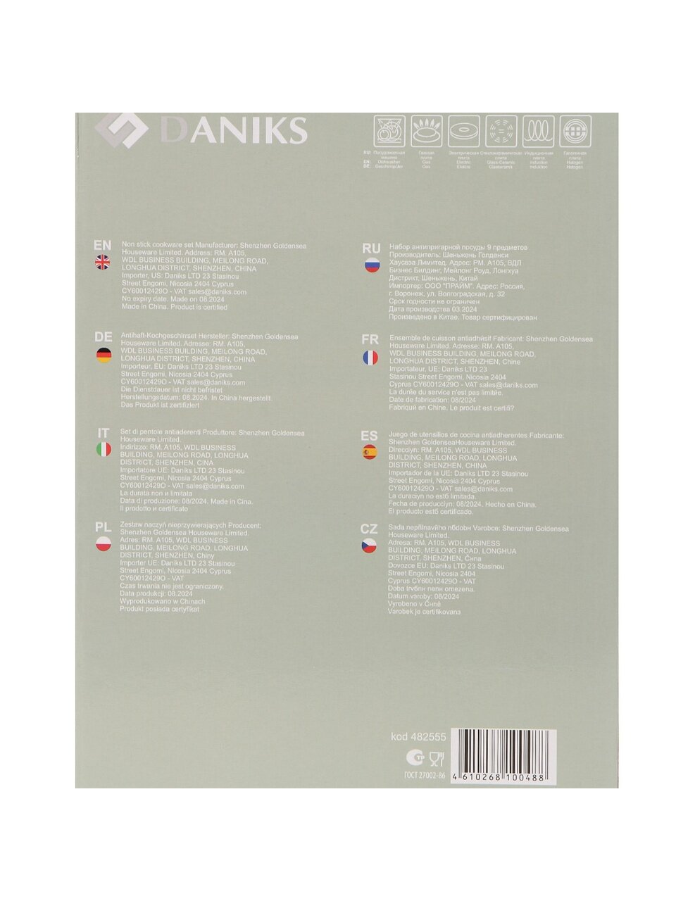 Да, благодаря стальному индукционному диску из стали 430, посуда Daniks GS-11078-9PC-green полностью совместима с индукционными плитами, а также подходит для газовых, электрических, стеклокерамических и галогеновых конфорок.