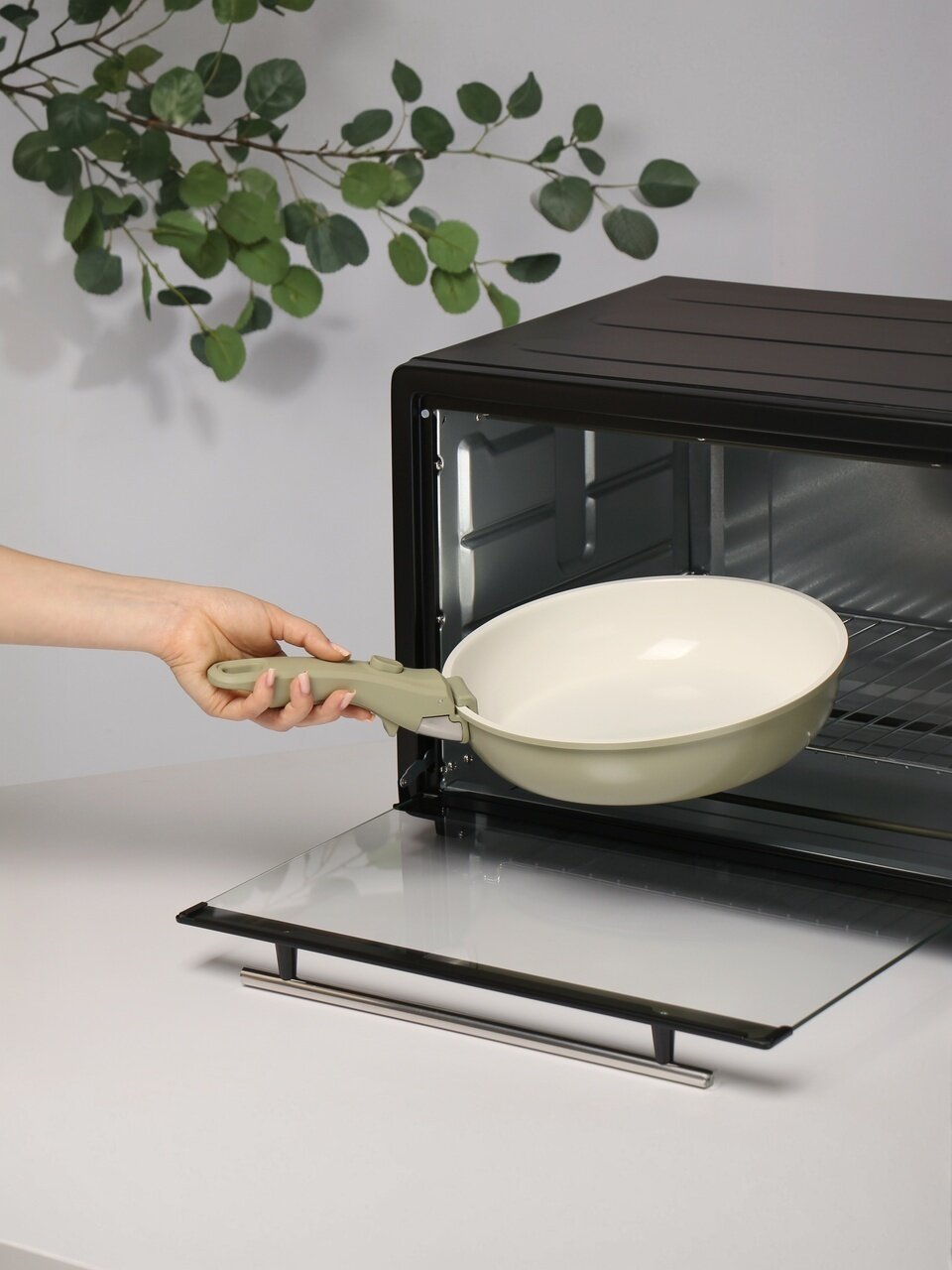 Керамическое антипригарное покрытие внутри предотвращает пригорание пищи, облегчает мытье и позволяет готовить с минимальным количеством масла — удобно для здорового питания и экономии времени на уборку.