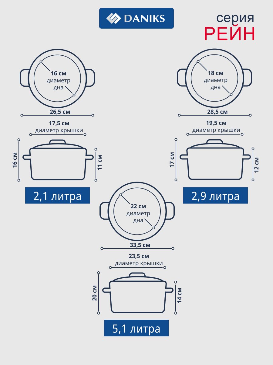 Если вы ищете, какой набор посуды выбрать для индукционной плиты, обратите внимание на Daniks Рейн: здесь нет антипригарного покрытия, что делает изделия безопасными для здоровья и продлевает срок службы. В отличие от аналогов с алюминиевым корпусом, сталь 201 устойчива к коррозии и механическим повреждениям. Как использовать набор? Готовьте борщи, голубцы, каши, супы, компоты и даже жарьте во вместительной сковороде — всё под рукой в одном комплекте.