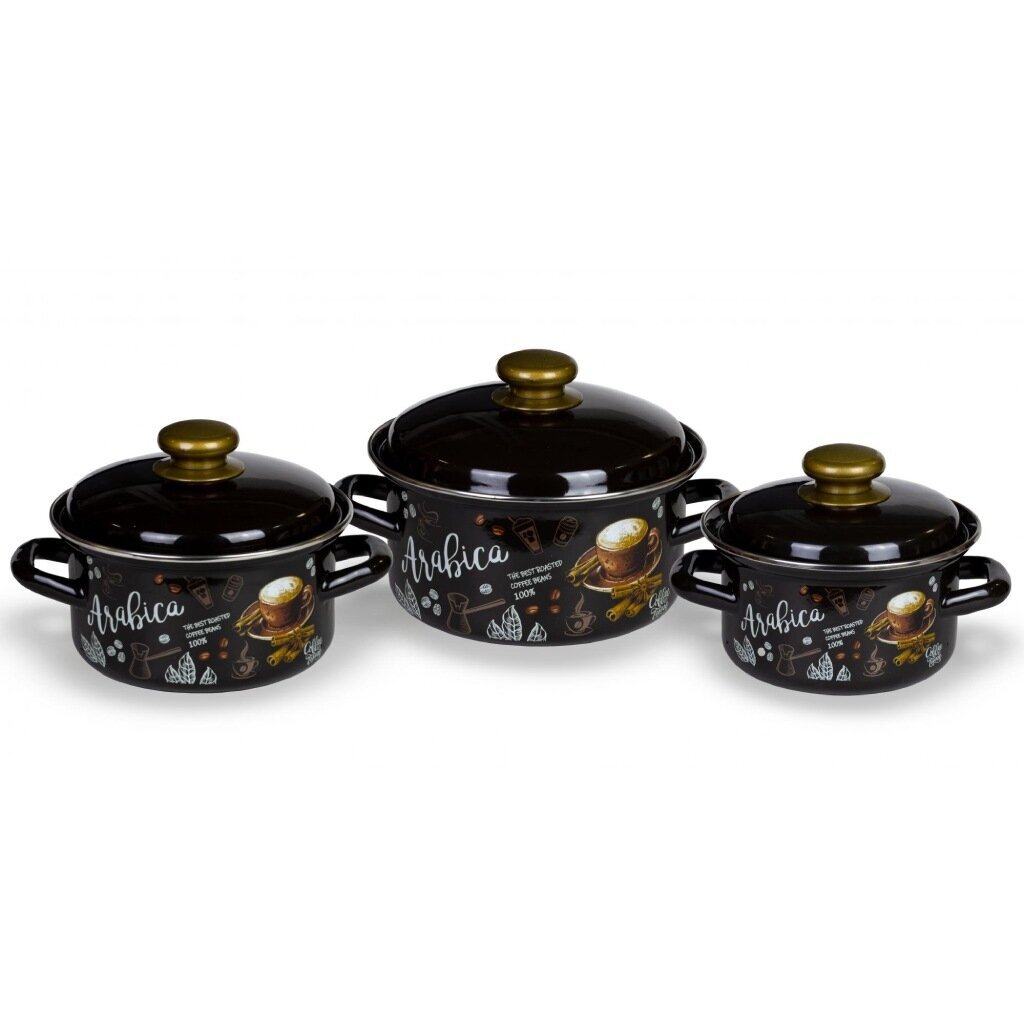 Вы можете приобрести «Набор посуды эмалированная сталь, 6 предметов, кастрюли 1,1.5,2.3 л, индукция, Керченский металлургический завод, Арабика-1, коричневый» и другие товары в нашем интернет-магазине в Казани по низким ценам и с бесплатным самовывозом.