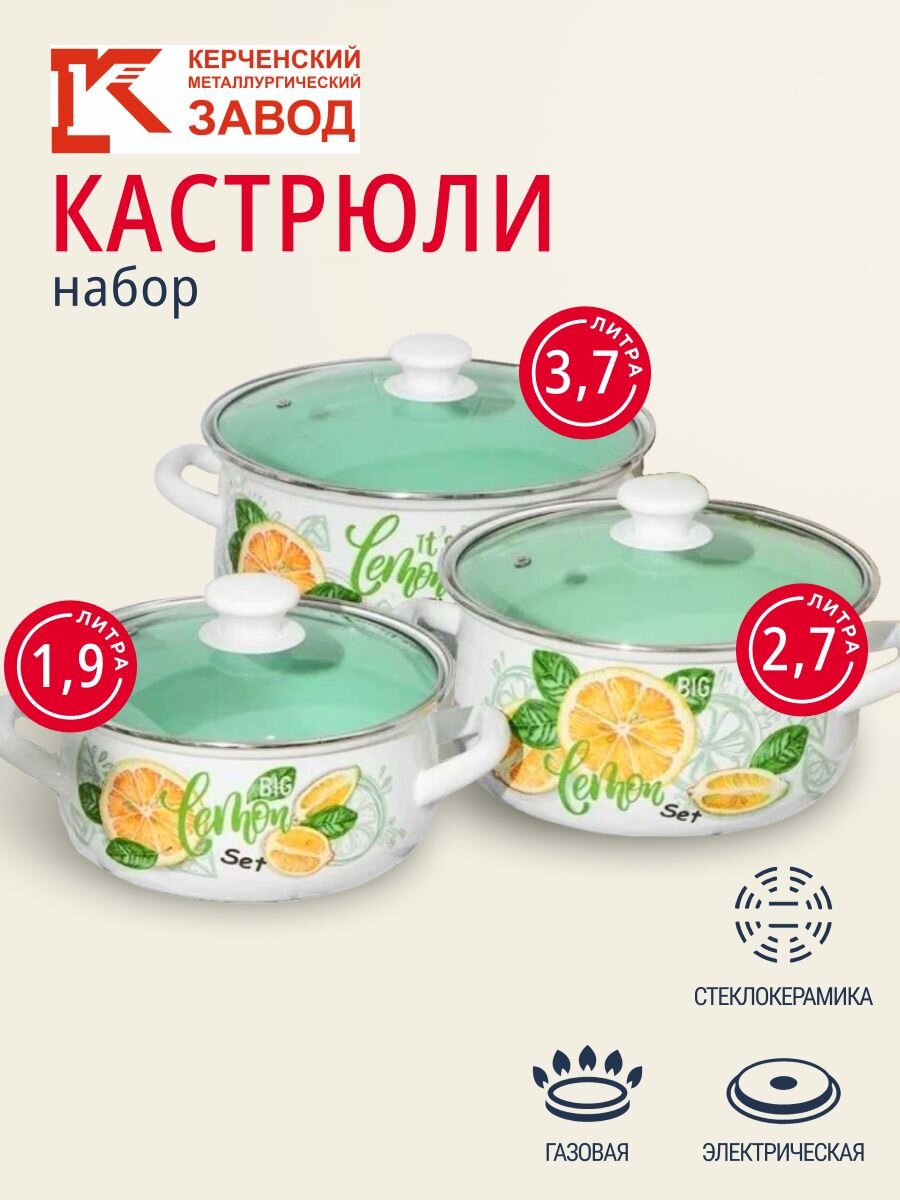 Вы можете приобрести «Набор посуды эмалированная сталь, 3 предмета, кастрюли 2, 3, 4 л, Керченский металлургический завод, Лимонный сет-1 Экстра» и другие товары в нашем интернет-магазине в Курске по низким ценам и с бесплатным самовывозом.