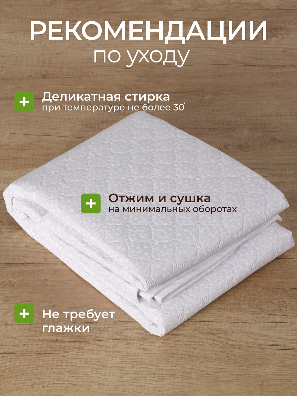 Особенностью наматрасника является его двухсторонняя конструкция, что позволяет использовать его с обеих сторон, продлевая срок службы изделия. Эластичная резинка надежно фиксирует наматрасник на матрасе, предотвращая его смещение даже во время активного сна.