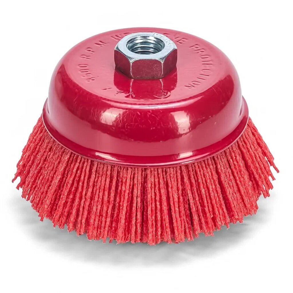 - Щётка для УШМ с нейлоновым ворсом обладает высоким качеством и долговечностью.