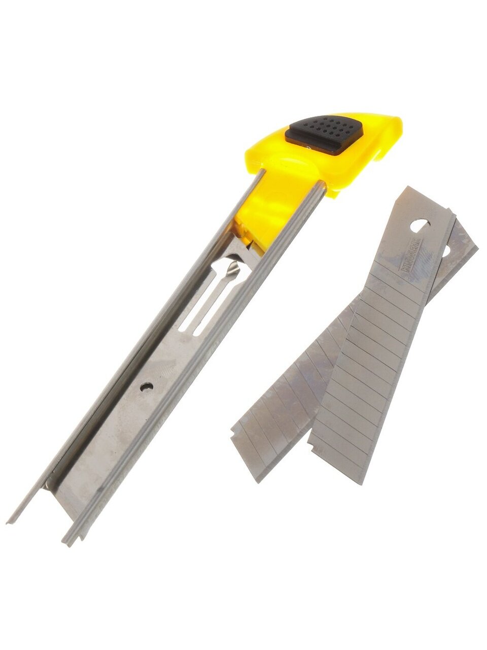 Вы можете приобрести «Нож строительный, 100 мм, выдвижное лезвие, 3 шт, с фиксатором, Kinwehr, 571004» и другие товары в нашем интернет-магазине в Коврове по низким ценам и с бесплатным самовывозом.