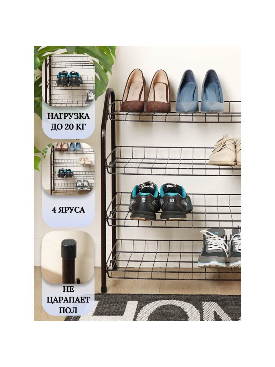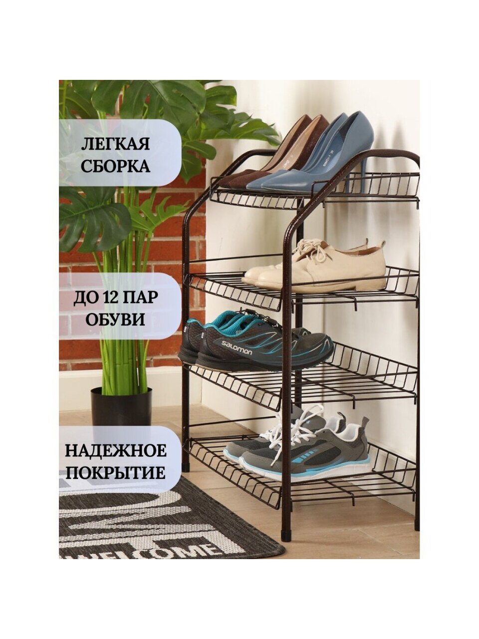Вы можете приобрести «Полка для обуви, металл, 4 секции, 66х28х70 см, разборная, медный антик, Nika, ЭТ1/А» и другие товары в нашем интернет-магазине в Обнинске по низким ценам и с бесплатным самовывозом.