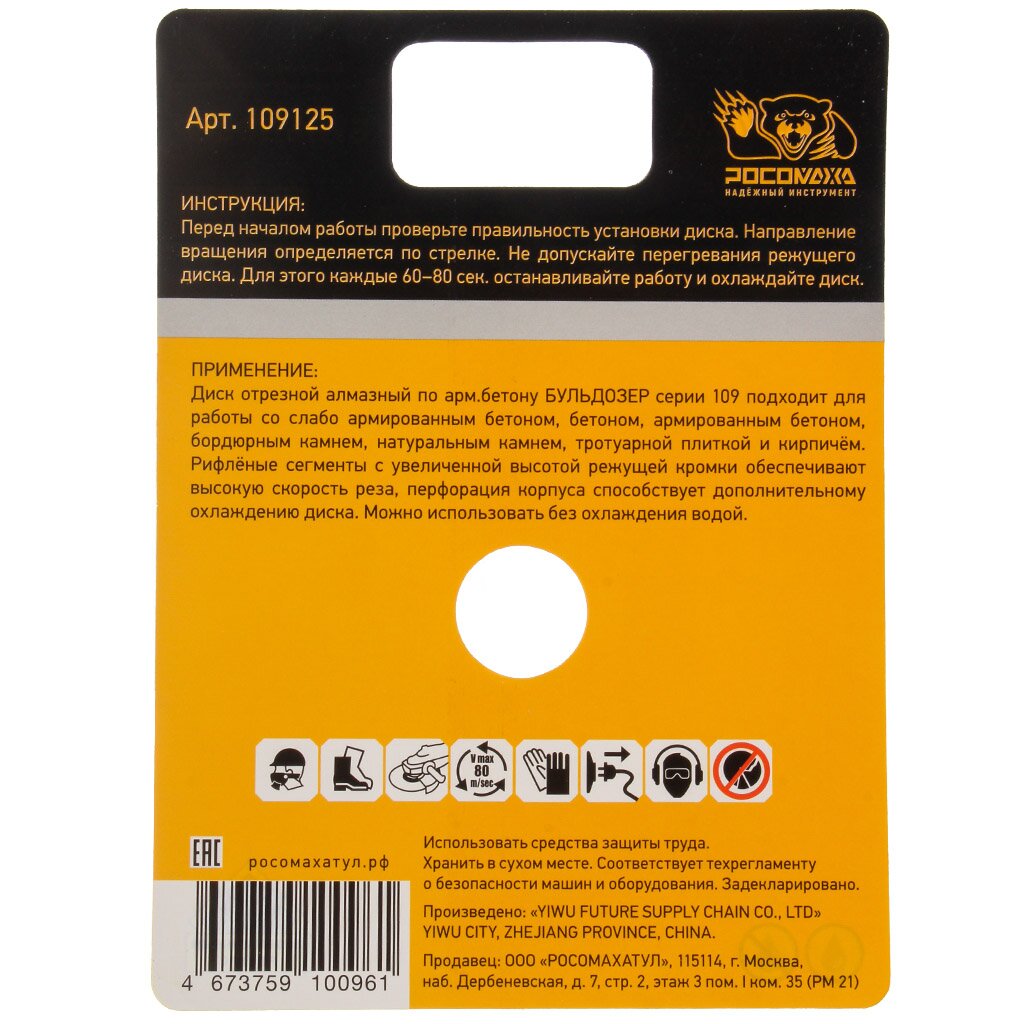 Вы можете приобрести «Диск отрезной алмазный по армированному бетону, Росомаха, Бульдозер, сегментный край, 125х22.23х2.1 мм, сухой рез, 109125» и другие товары в нашем интернет-магазине в Россоши по низким ценам и с бесплатным самовывозом.