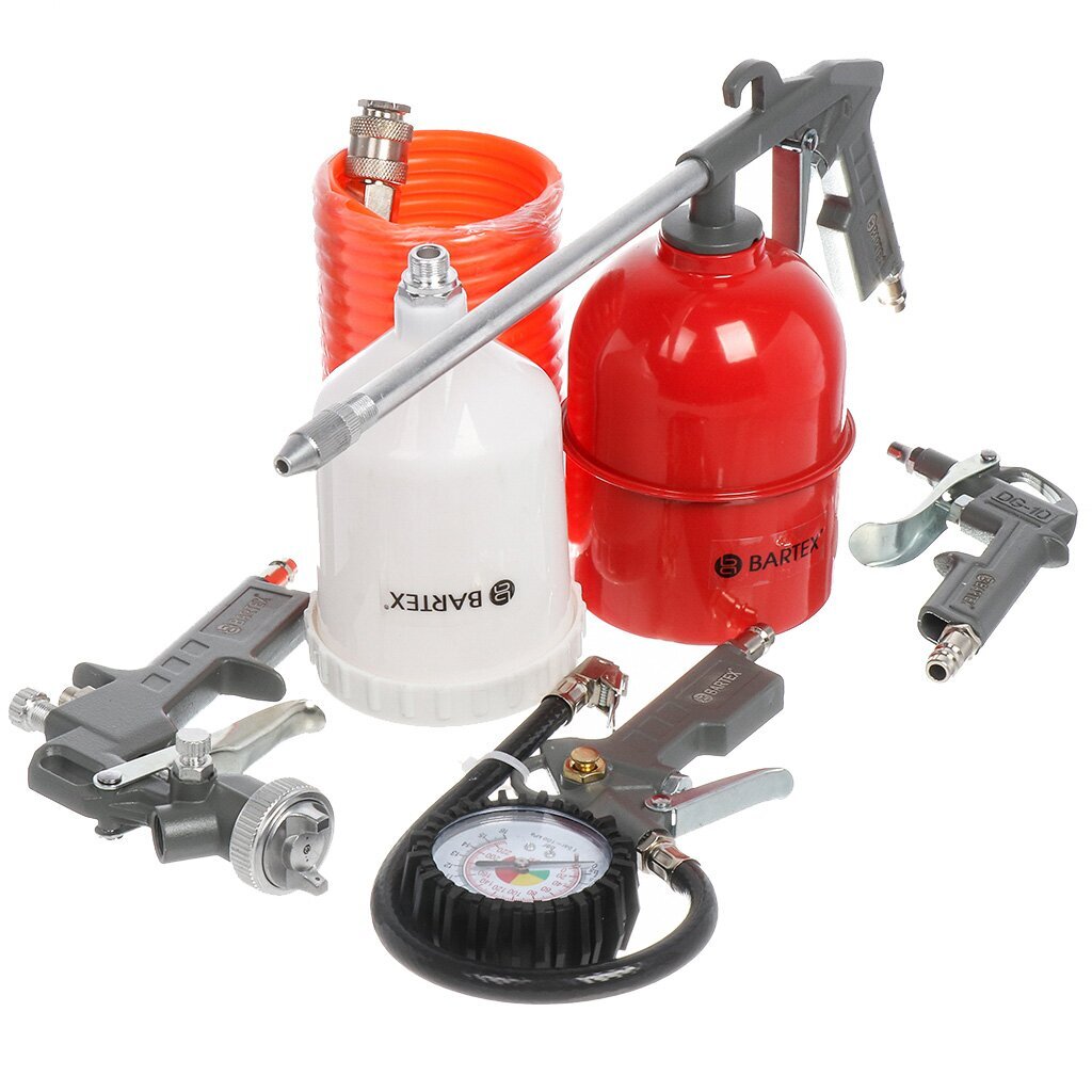 Набор Bartex – это отличный комплект, в котором есть все необходимое для работы с пневматикой. Он значительно сократит время ремонтных работ и улучшит их качество. С его помощью Вы без труда нанесете ровное лакокрасочное покрытие, подкачаете шины или избавитесь от нежелательного мусора в труднодоступных местах. Это не только нужный в каждом доме инструмент, но и отличная идея для подарка.