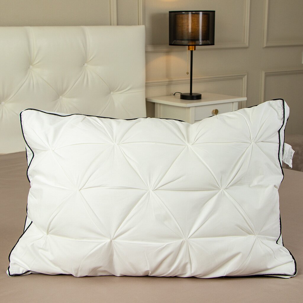Эта подушка 50 на 70 см создана для тех, кто ищет сочетание мягкости и поддержки без компромисса по здоровью. Наполнитель — современный холлофайбер (лебяжий искусственный пух) — обеспечивает объём и воздушность, не сминается и не сбивается даже после многократных стирок. Чехол из 100% хлопка приятен коже, хорошо пропускает воздух и не вызывает раздражения. Окантовка по периметру усиливает форму и продлевает срок службы.