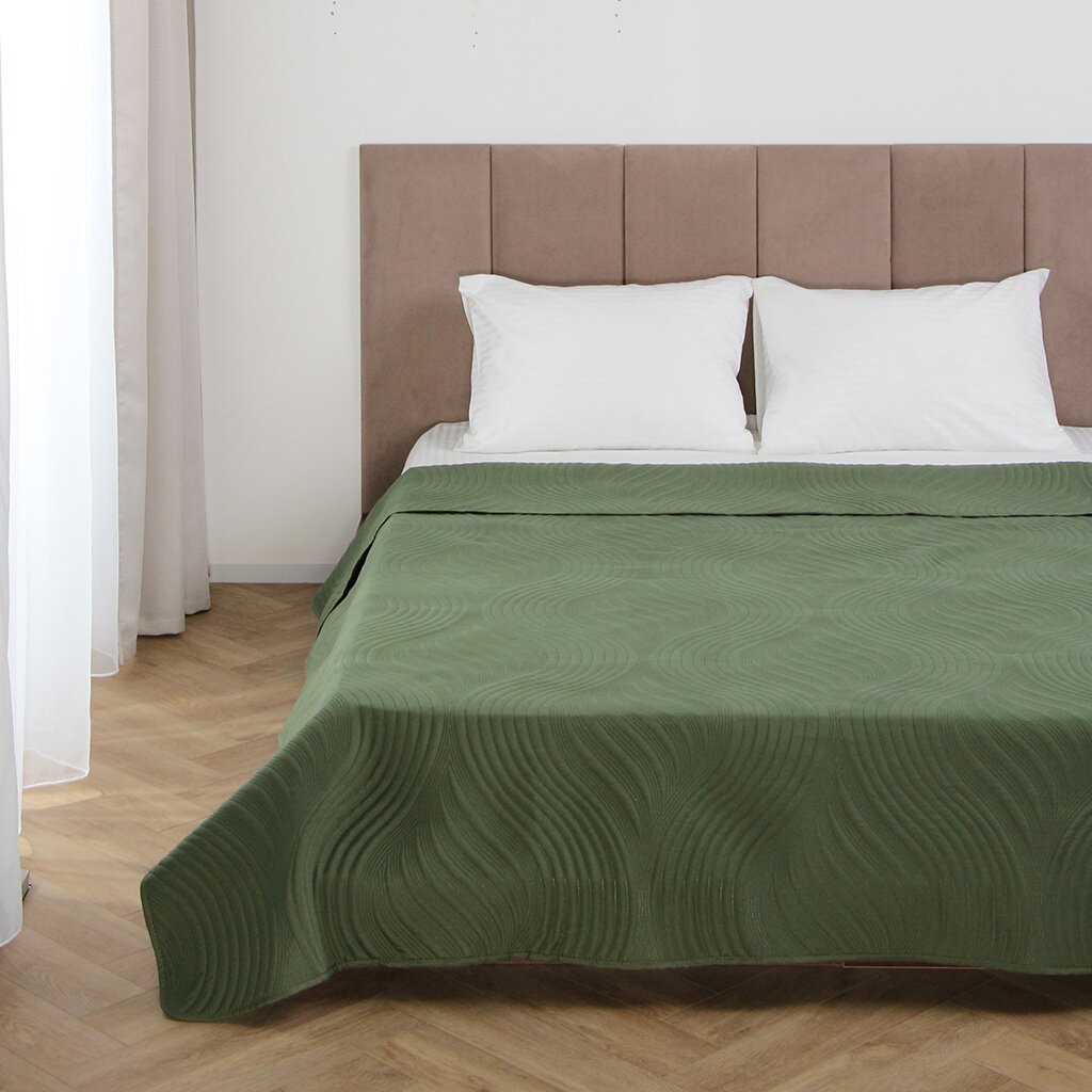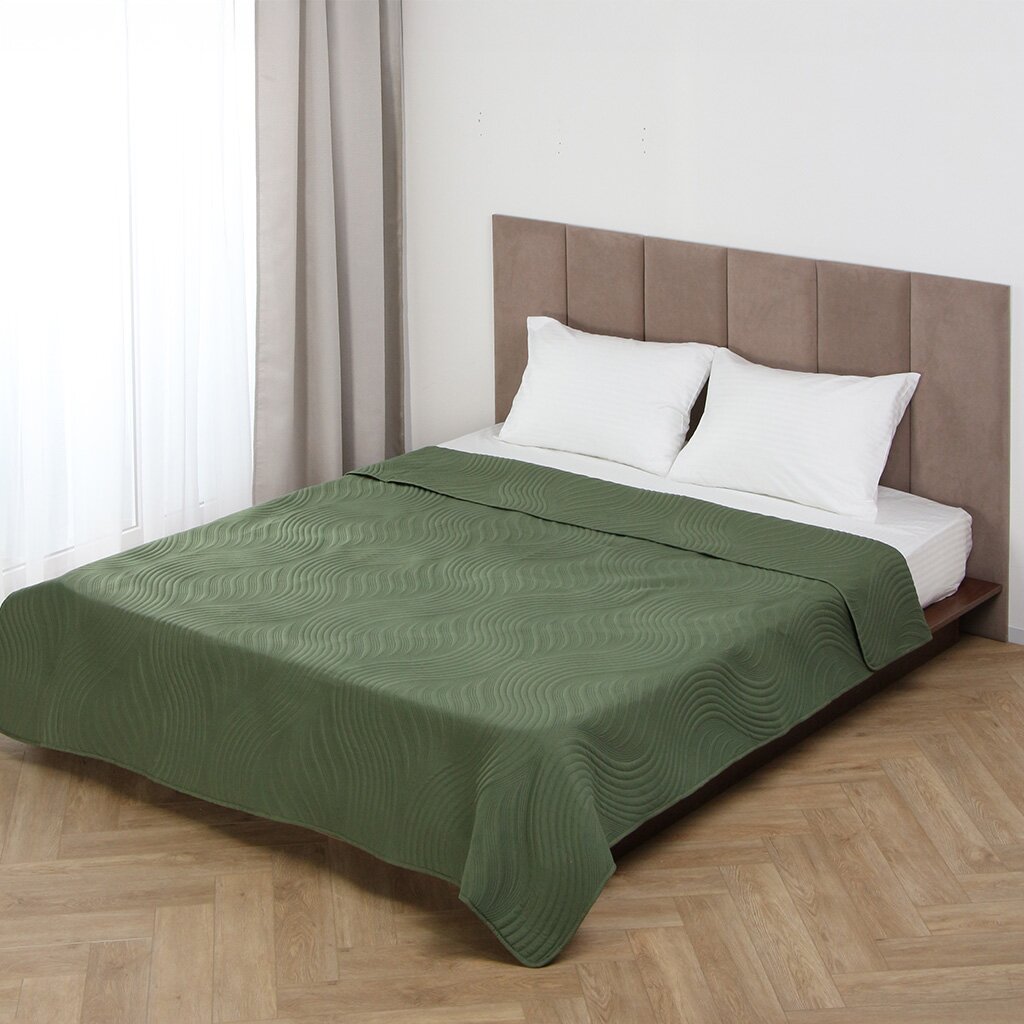 Размер 200х220 см (евро), цвет — темно-зеленый, дизайн минималистичный, однотонный с узором, подходит для современных интерьеров.