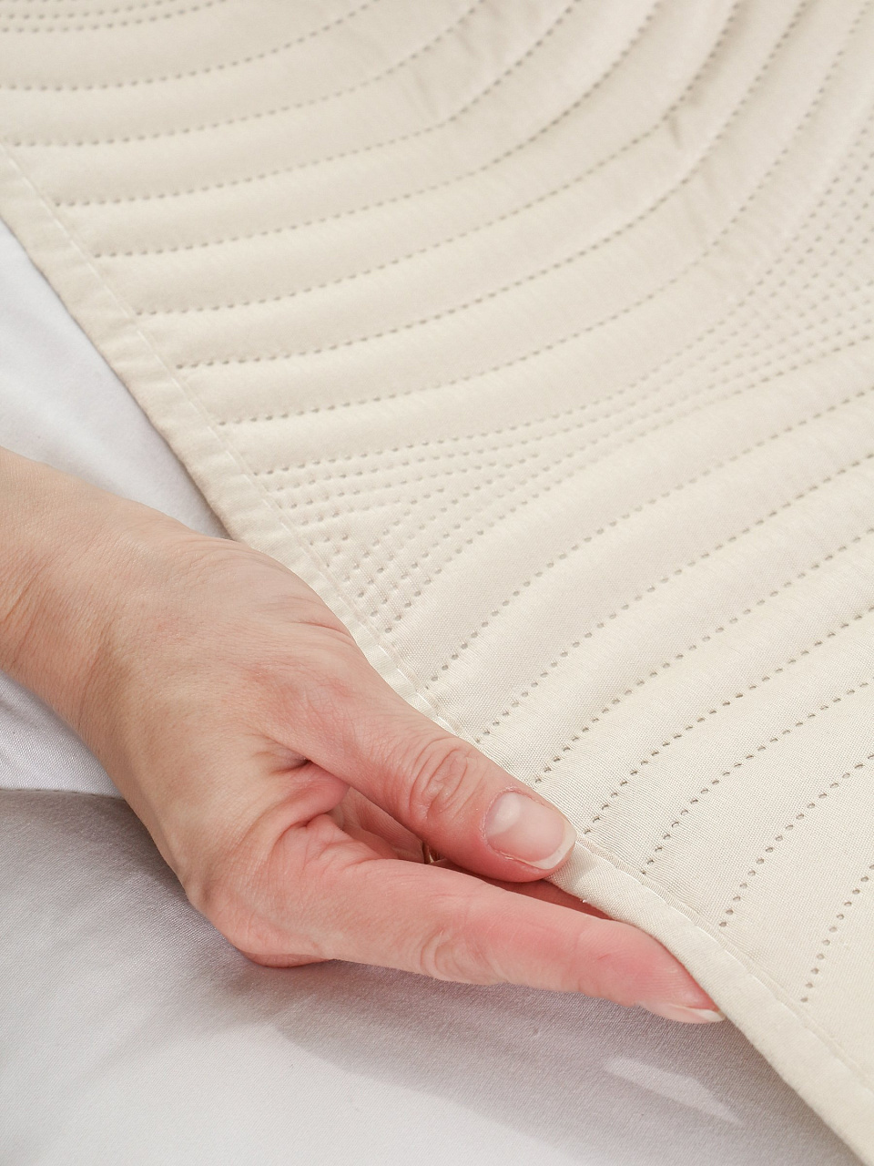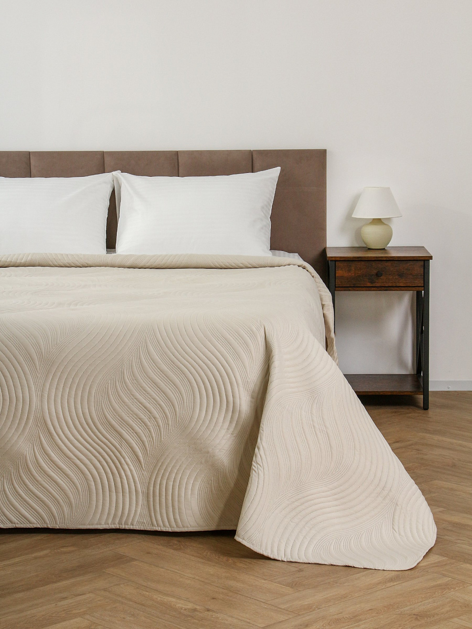 - Современный минимализм: лаконичный молочный оттенок и стеганый узор подойдут к любому интерьеру.