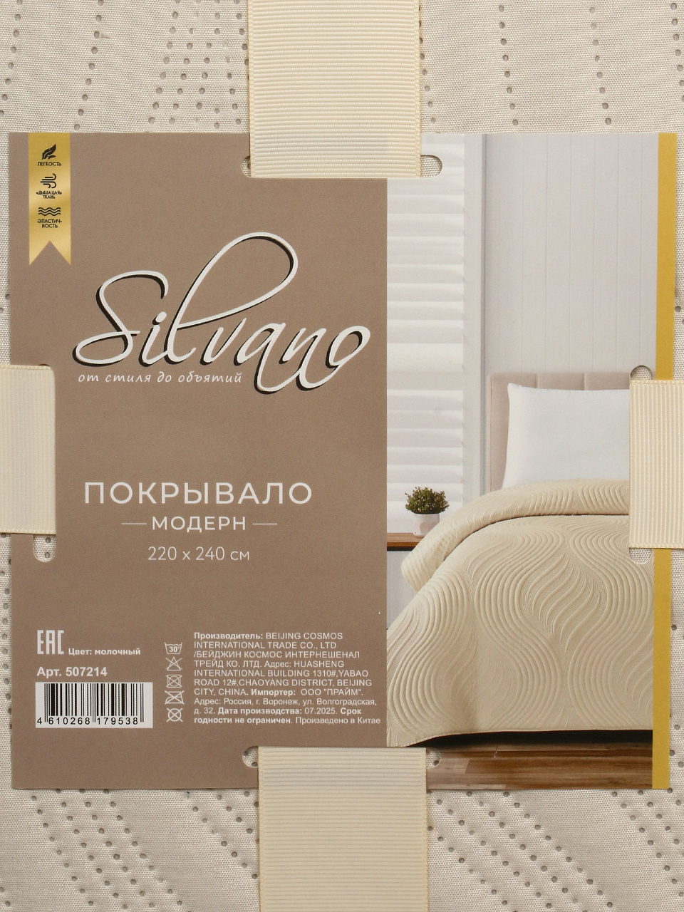 Покрывало евро размера 220х240 см Silvano Модерн — это универсальное решение для тех, кто ищет, какое покрывало выбрать для спальни или гостиной. Стеганая структура обеспечивает дополнительную прочность, а 100% полиэстер гарантирует долговечность и простоту в уходе: покрывало не требует глажки, быстро сохнет и не выцветает. Молочный цвет смотрится дорого и визуально расширяет пространство, что важно для современных интерьеров в стиле минимализм.