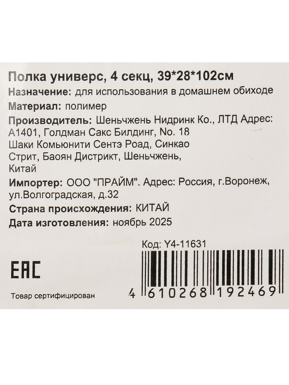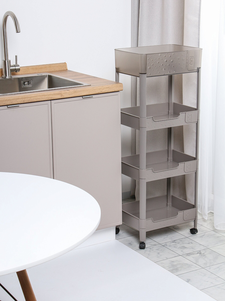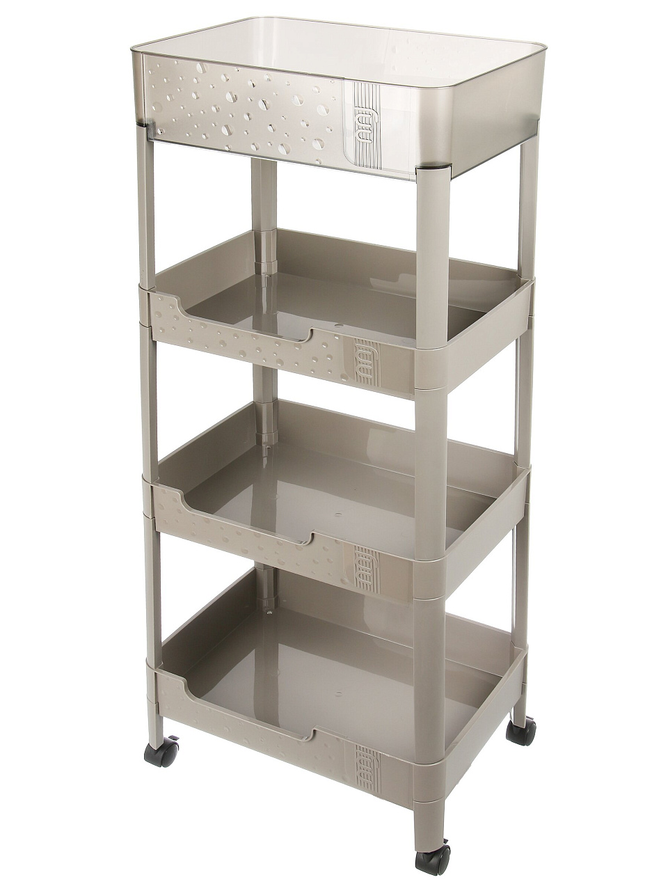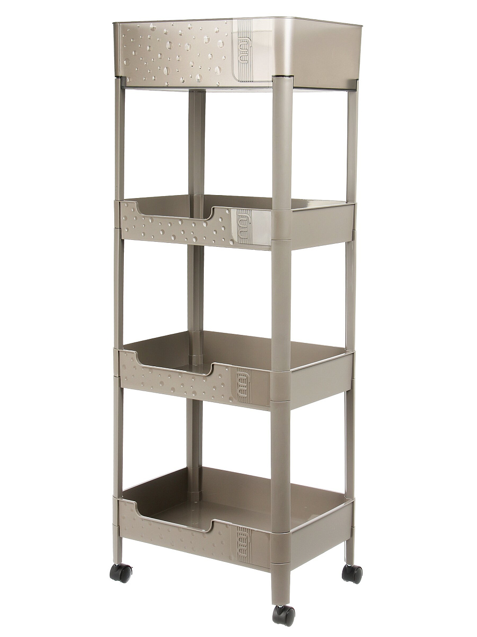 Полка универсальная, пластик, 4 секции, 39х28х102 см, на колесах, серая, Y4-11631
