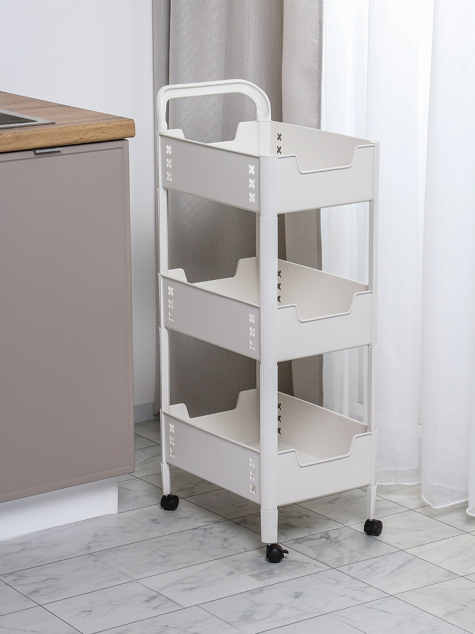 Универсальная полка из пластика с тремя секциями — практичный выбор для тех, кто ищет недорогое и мобильное решение хранения. Благодаря колесам, полку легко перемещать даже с полной загрузкой. Размеры 41x30x83 см позволяют разместить её в ограниченном пространстве, а бортики предотвращают выпадение вещей. Если вы ищете, какую полку выбрать для хранения одежды, игрушек или бытовых товаров — этот вариант универсален и подходит для всех комнат.