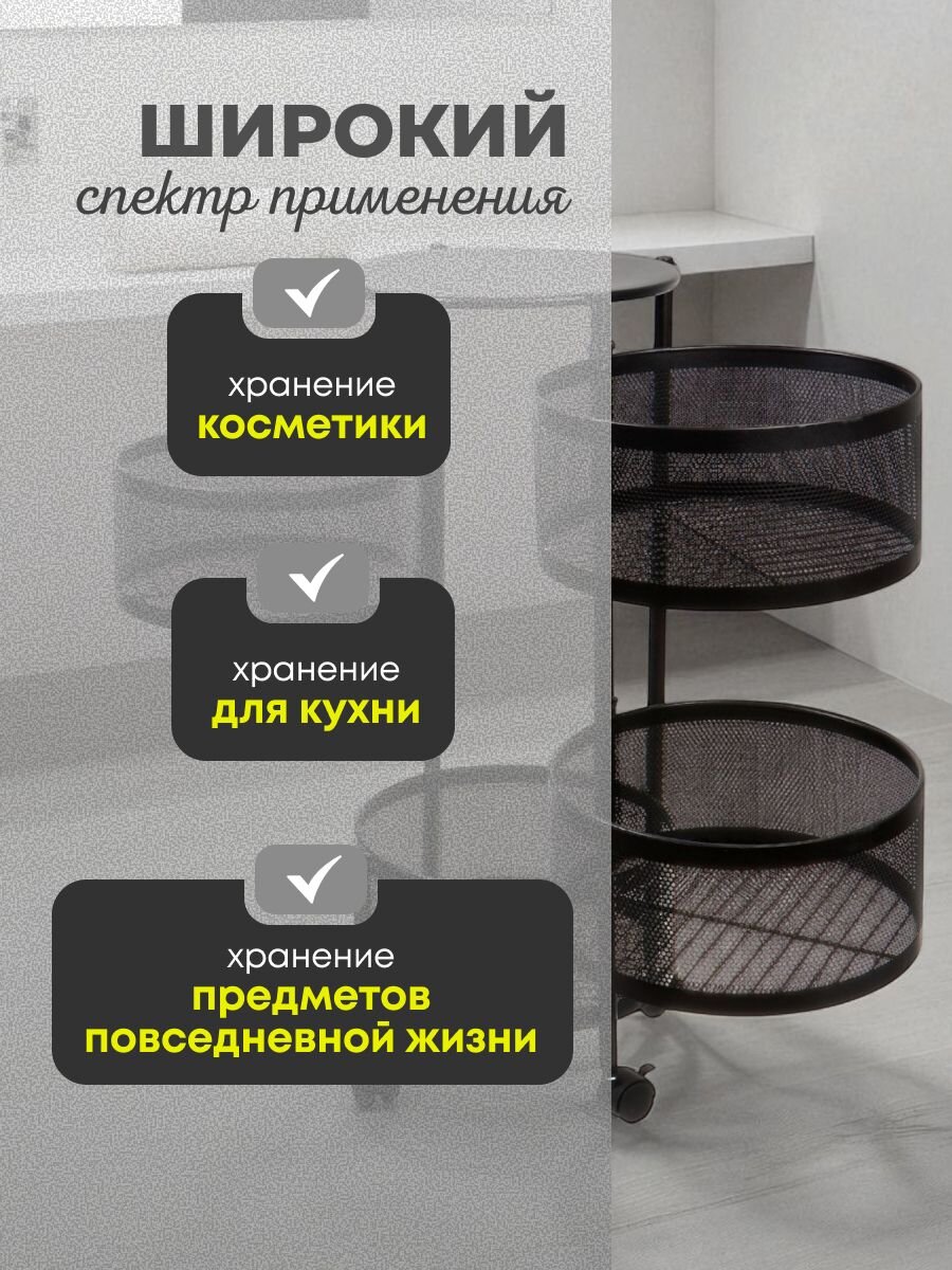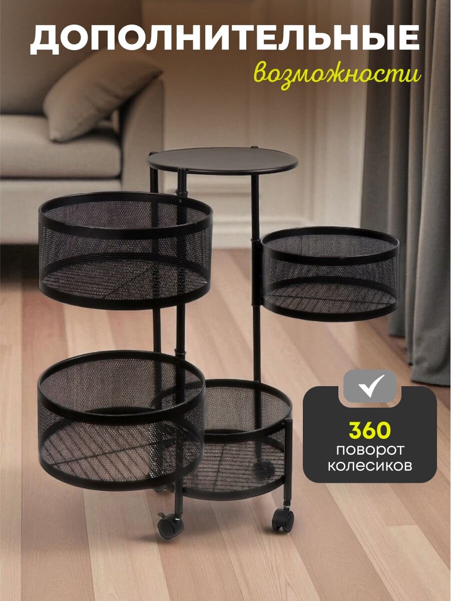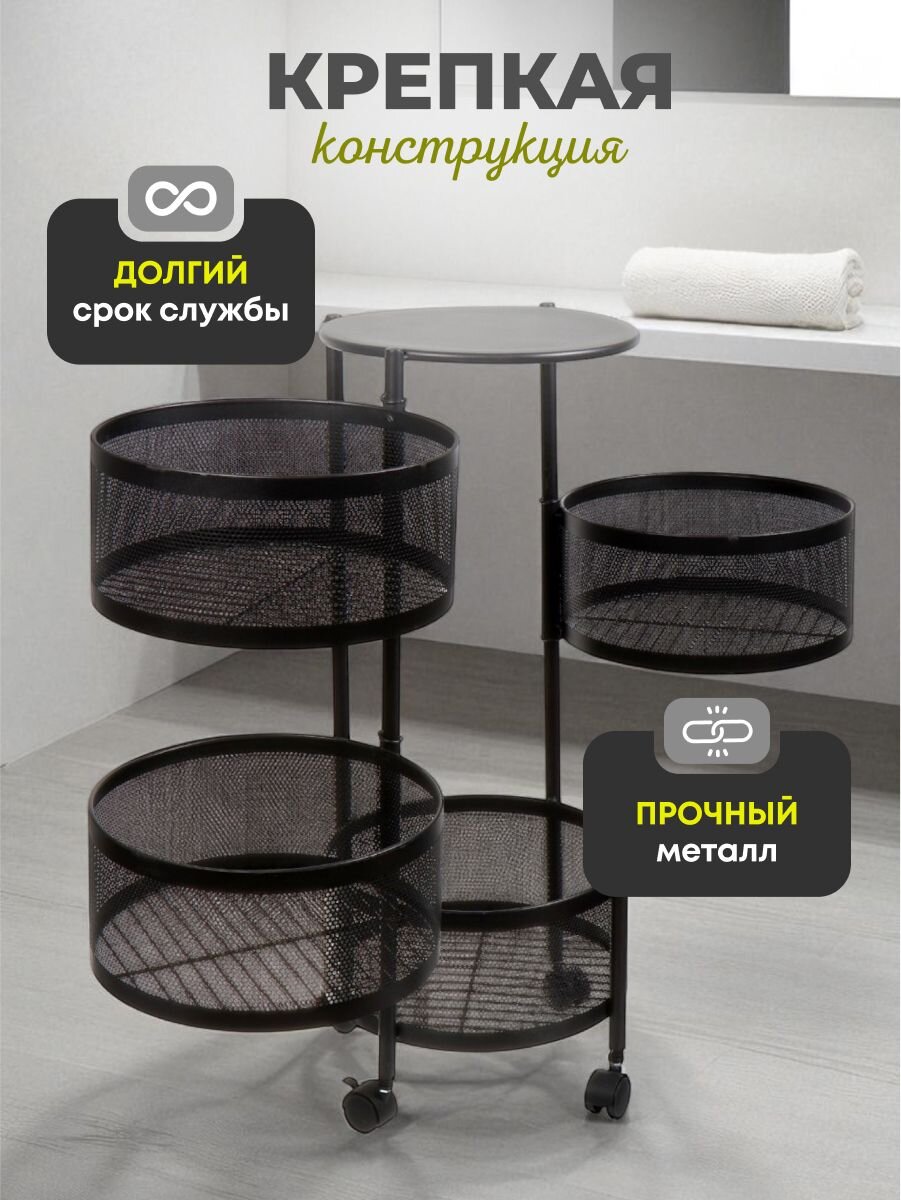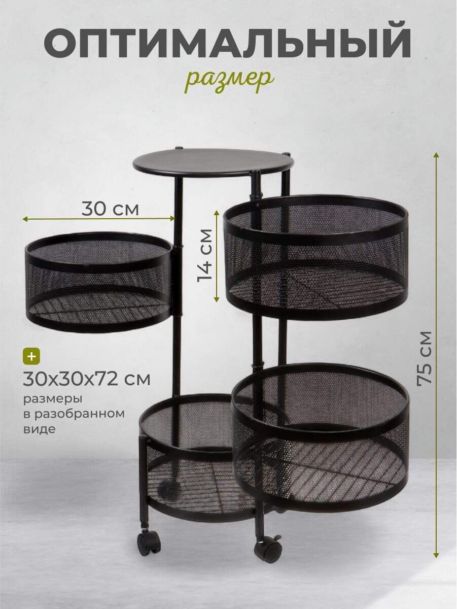 - Вращающаяся конструкция корзин. Поворачивающиеся полки дают возможность для комфортного хранения повседневных мелочей, средств гигиены и бытовой химии, газет и журналов, овощей и фруктов, игрушек и предметов для детского творчества.