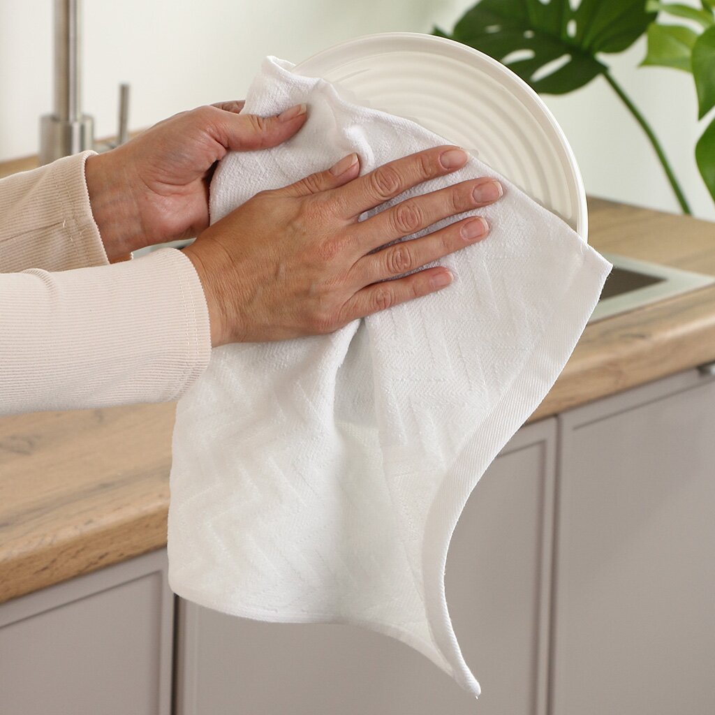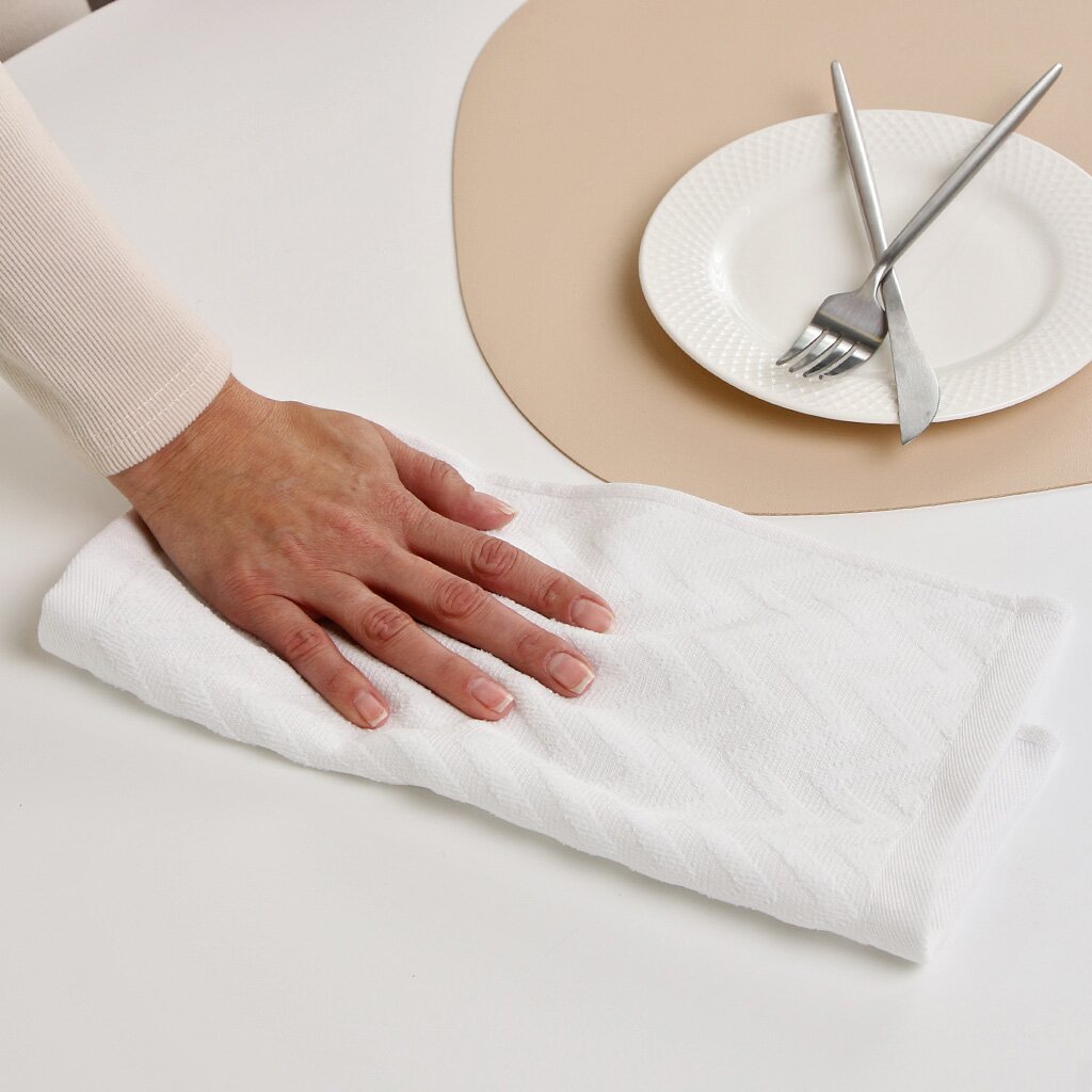 Чем отличается это полотенце от аналогов? В отличие от синтетических и тонких моделей, махровая фактура сохраняет форму после многократных стирок и не теряет белизну. Подходит ли для подарка? Да — лаконичный белый цвет и брендовый дизайн делают его универсальным презентом для дома или дачи. Как выбрать размер? 30x30 см — оптимально для ежедневного использования и хранения, не занимает много места.