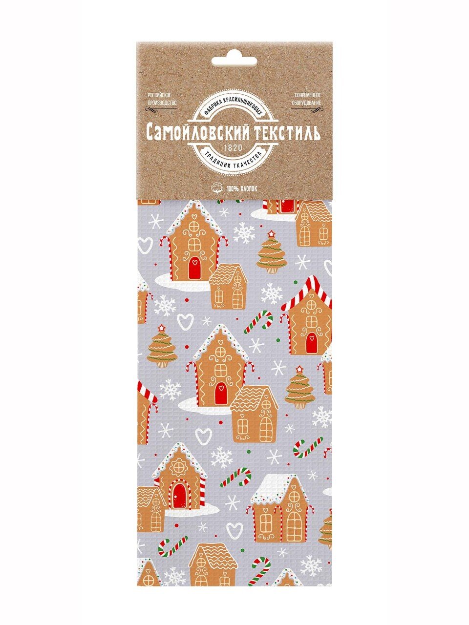 Вафельное кухонное полотенце 45х60 см «Имбирная сказка» — уют для дома, идеальный новогодний подарок, 100% хлопок, Самойловский текстиль, РФ.
