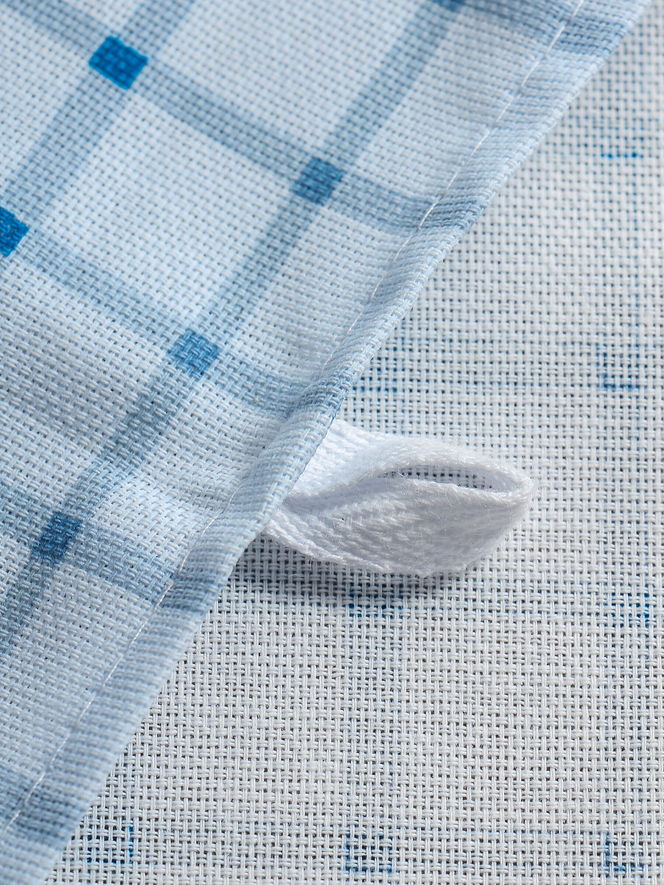 Ширина — 35 см, длина — 50 см, материал — 100% хлопок, цвет — голубая клетка.
