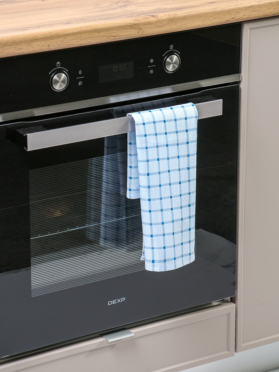 Многие спрашивают: «Как выбрать кухонное полотенце для частого использования?» — оптимален именно этот размер, он не занимает много места, но достаточно большой для сушки посуды и рук. В отличие от синтетических аналогов, хлопковое полотенце не электризуется, не вызывает раздражения и служит дольше. Стильная голубая клетка впишется в любой интерьер, а универсальность делает его отличным вариантом для подарка.