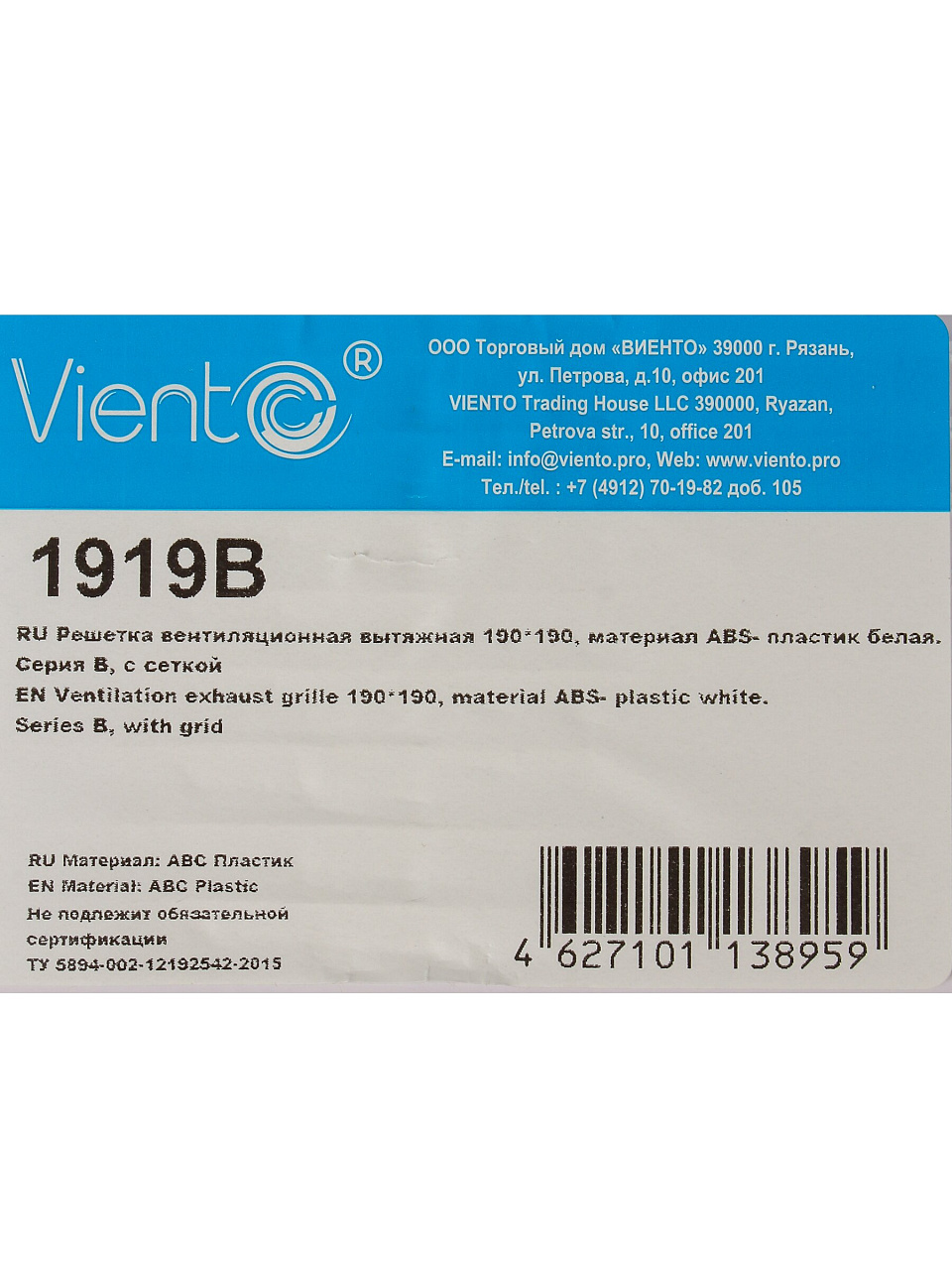 Вы можете приобрести «Решетка вентиляционная пластик, 190х190 мм, с сеткой, Viento, 1919В» и другие товары в нашем интернет-магазине в Ставрополе по низким ценам и с бесплатным самовывозом.