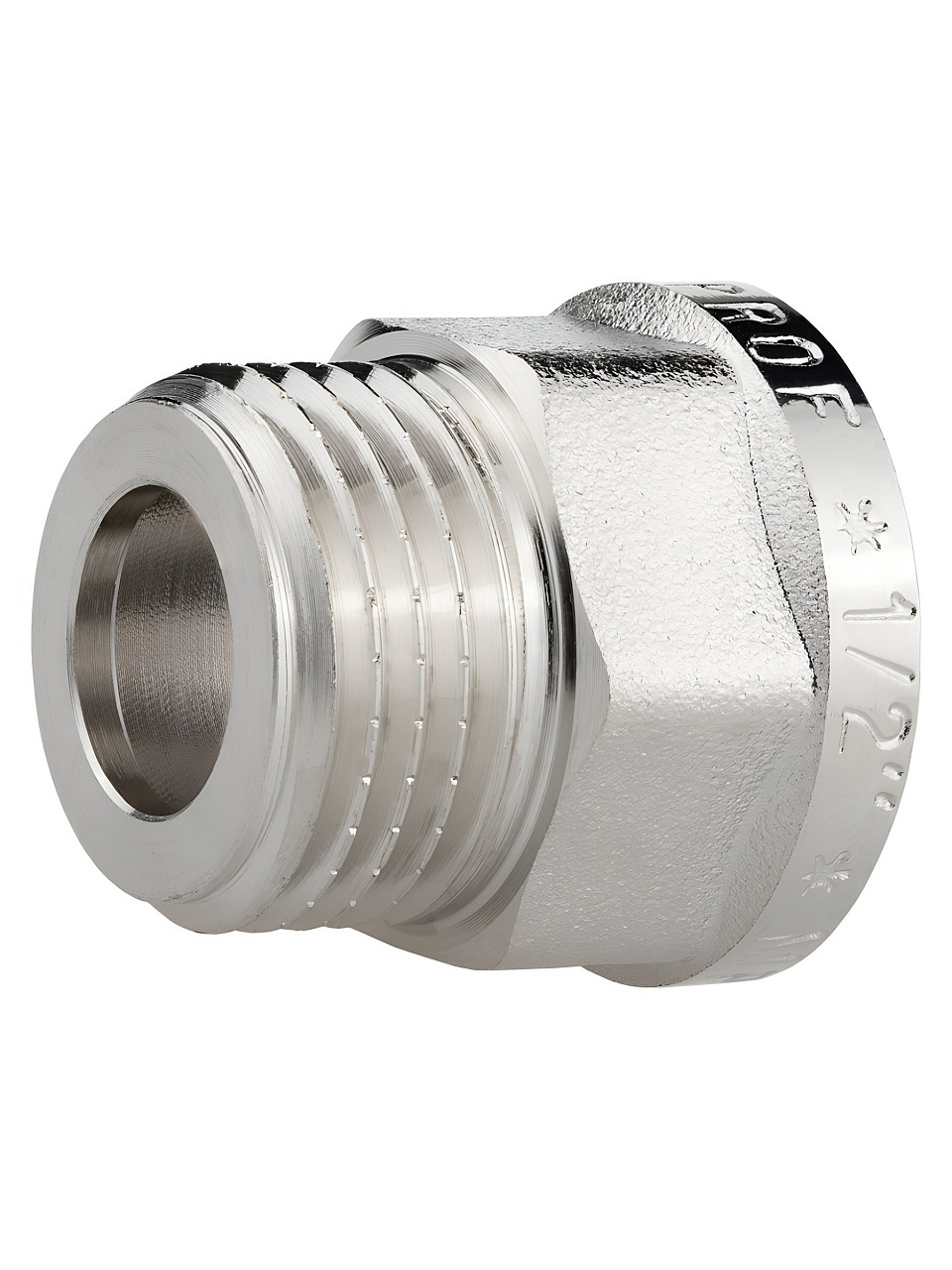 Переходник 1/2" с ребордой MPF: надежное соединение для гибкой подводки. Никелированная латунь, гарантия герметичности, быстрая установка.