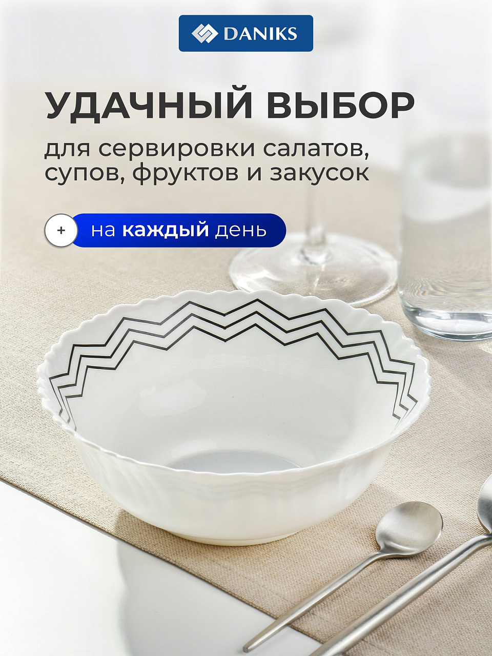 Салатник Daniks Вэнсдей 0.75 л — стильное решение для сервировки и хранения: прочная стеклокерамика, современный дизайн, подходит для СВЧ и посудомоечной машины.