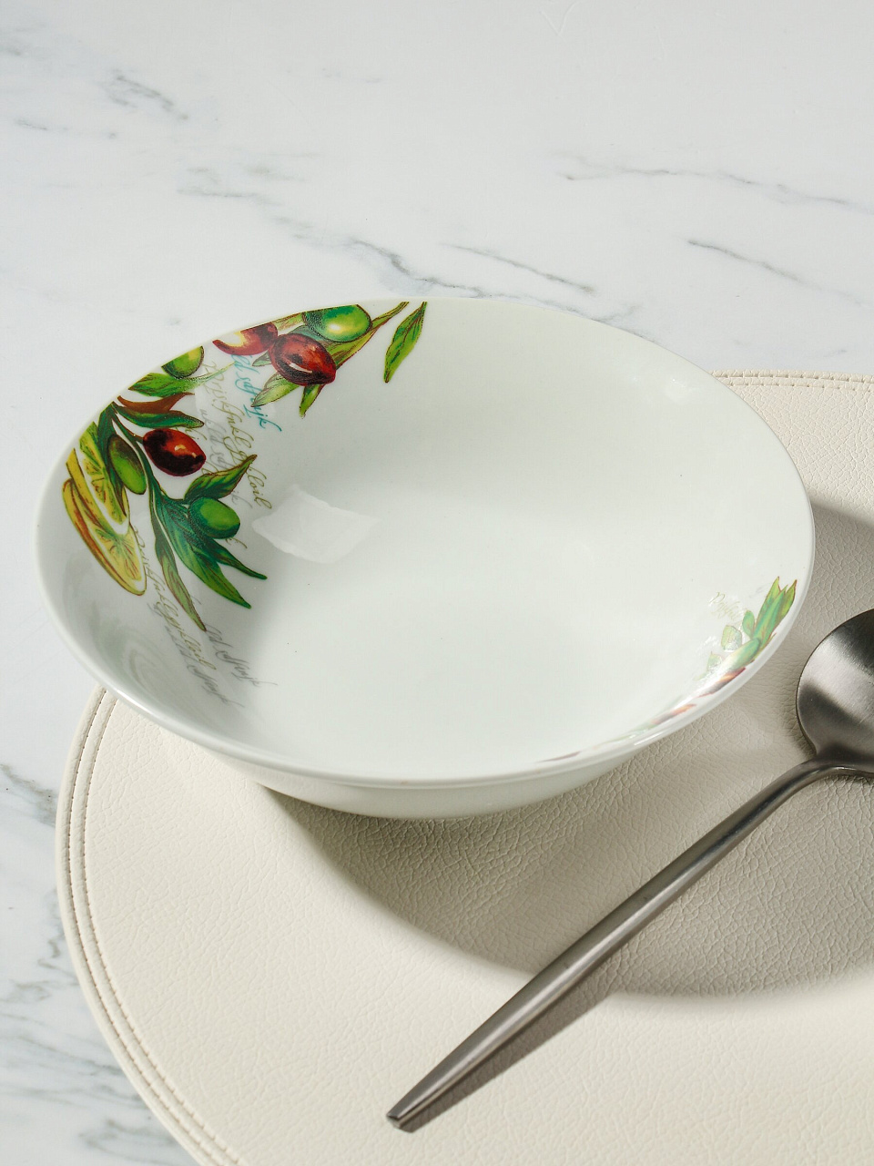 - Уникальный дизайн с оливковым мотивом — украсит любой стол и подчеркнёт вашу индивидуальность