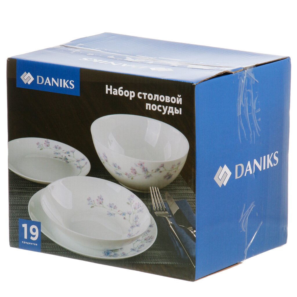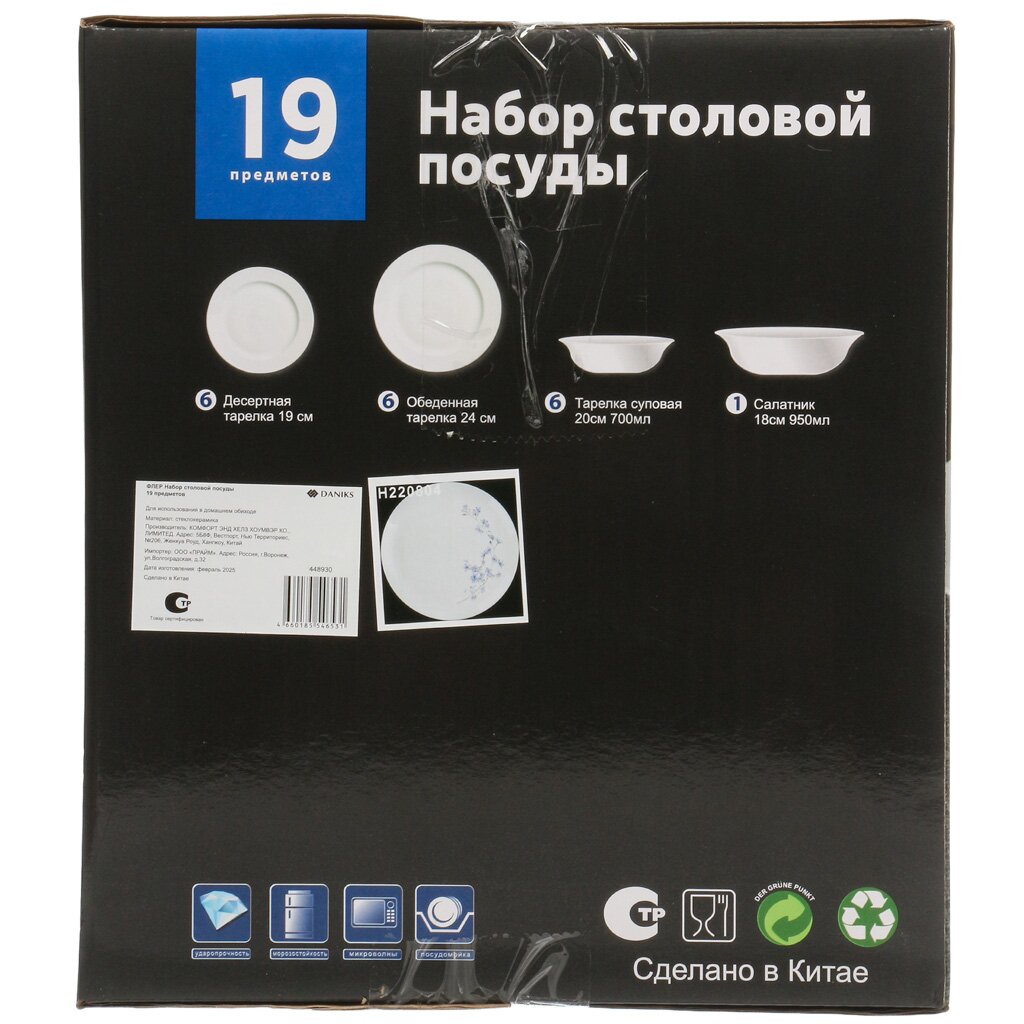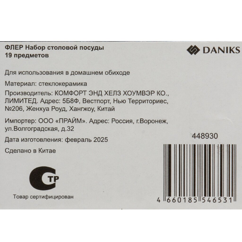 Сервиз столовый Daniks Флер из стеклокерамики на 6 персон — 19 предметов для стильной сервировки дома и дачи. Прочный, легко моется, идеален для подарка.