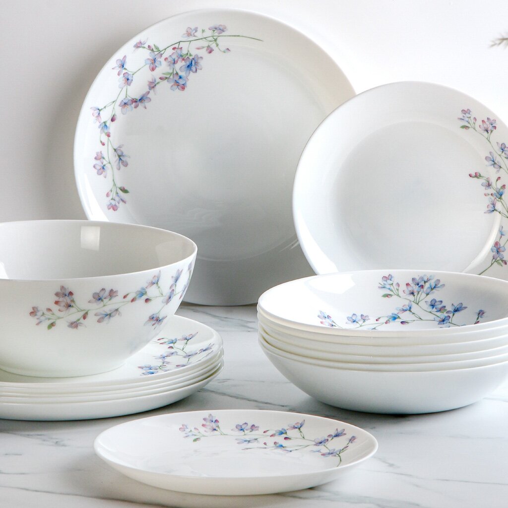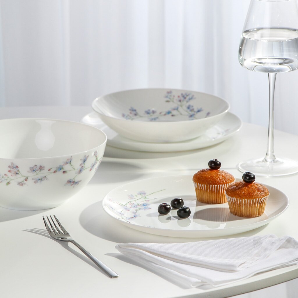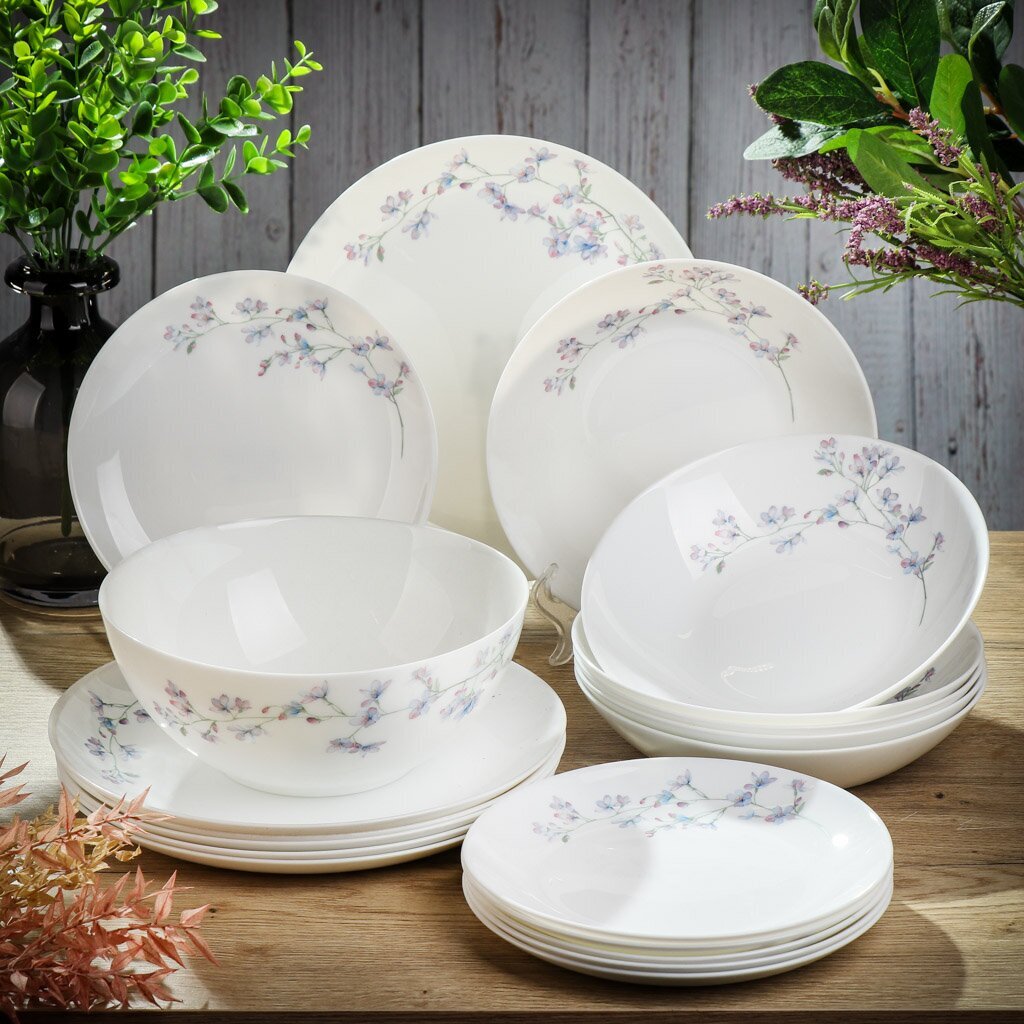 Сервиз столовый Daniks Флер из стеклокерамики на 6 персон — 19 предметов для стильной сервировки дома и дачи. Прочный, легко моется, идеален для подарка.