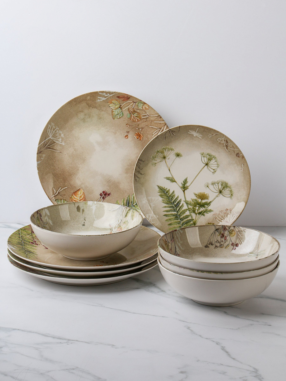 Сервиз столовый Bronco «Пастбище», 12 предметов на 4 персоны: стильная керамика для дома и дачи, подходит для СВЧ и посудомойки, в подарочной упаковке.