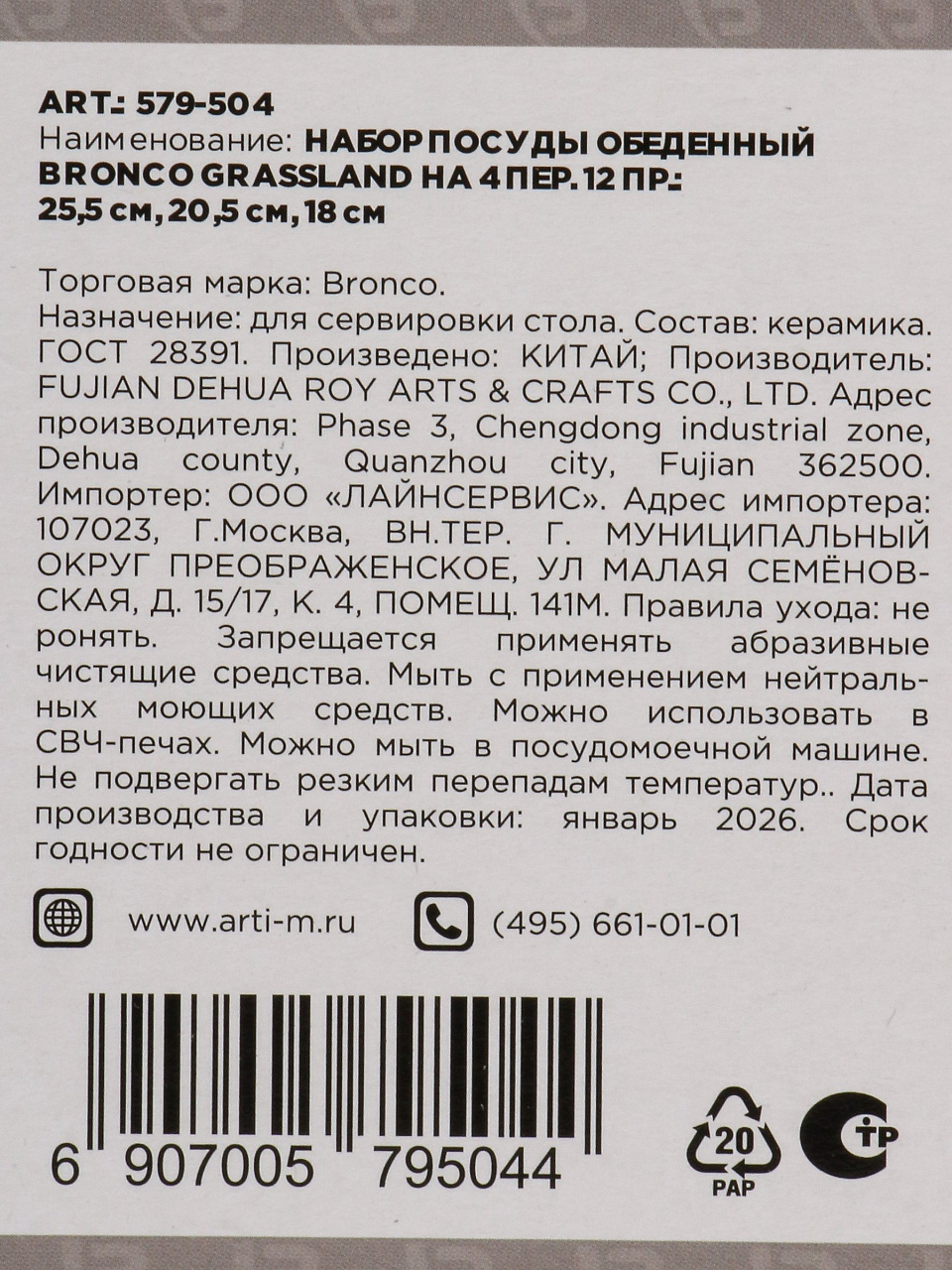 Вы можете приобрести «Сервиз столовый керамика, 12 предметов, на 4 персоны, Bronco, Пастбище, 579-504» и другие товары в нашем интернет-магазине в Клинцах по низким ценам и с бесплатным самовывозом.