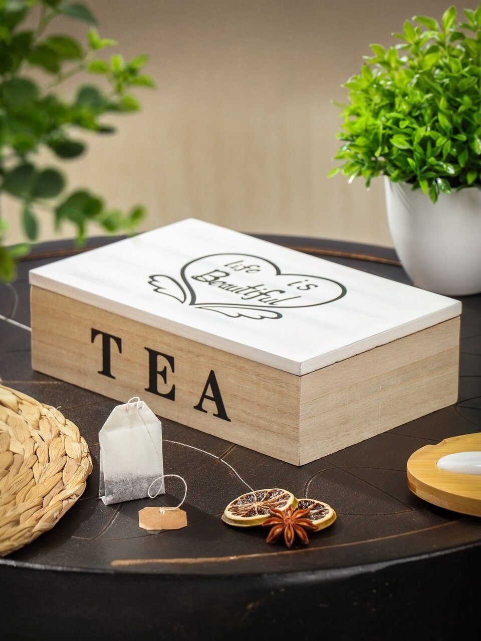 Емкость предназначена для хранения чая. Такая коробка очень функциональна и всегда пригодится на кухне.