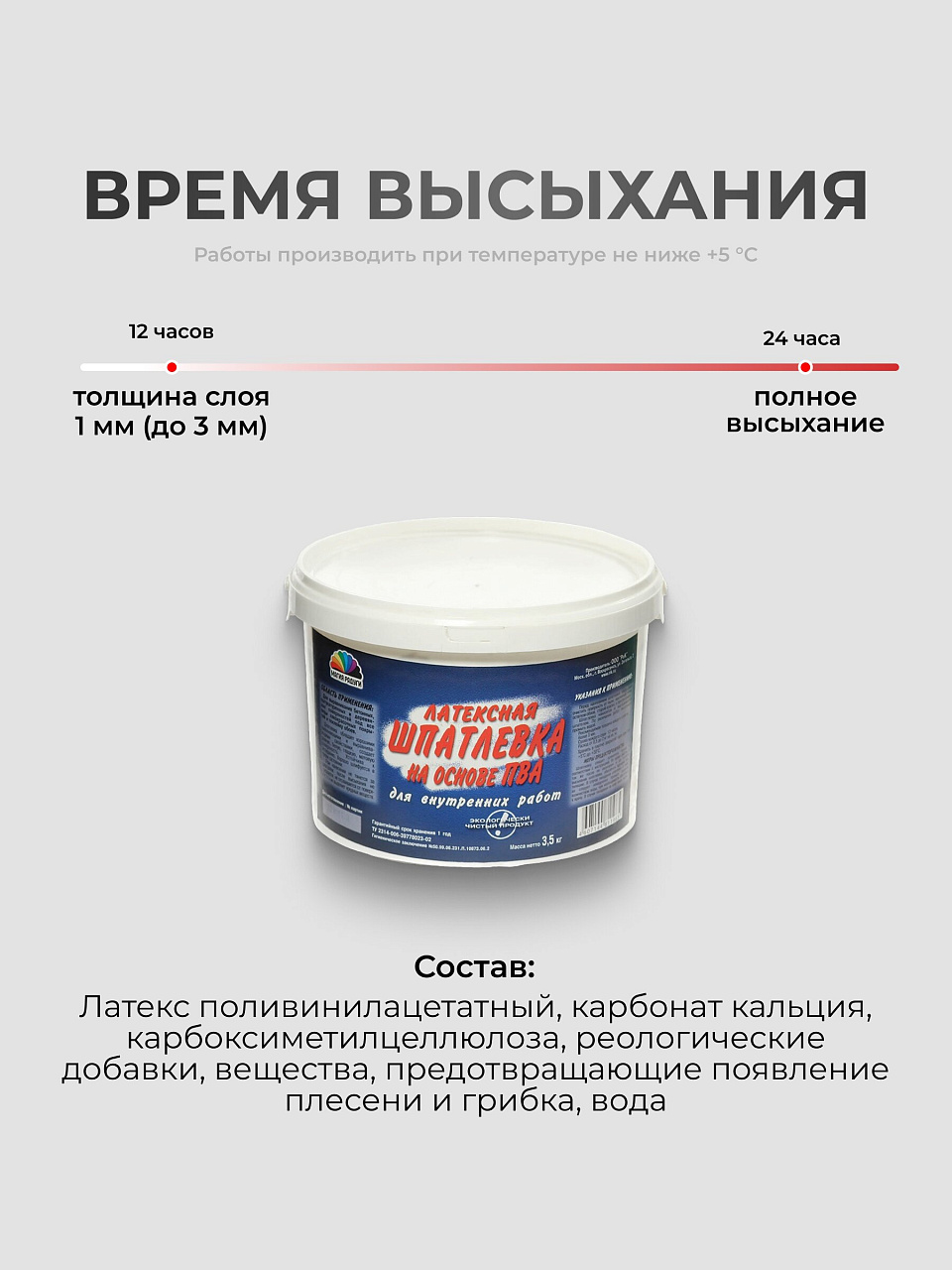 - Время высыхания 1 слоя: 12 часов.