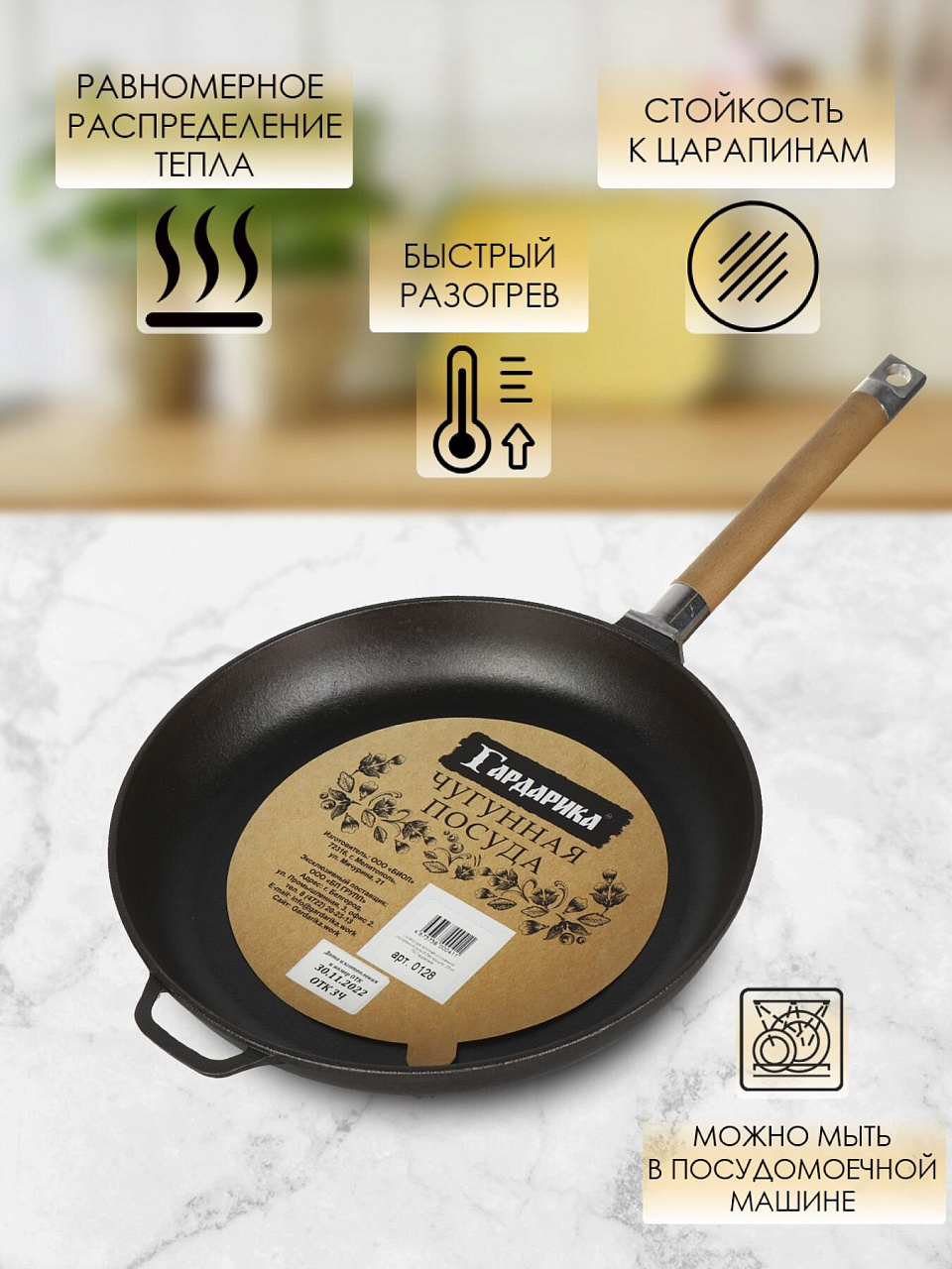 Вы можете приобрести «Сковорода чугун, 28 см, Гардарика, 0128, черная, съемная ручка, с деревянной ручкой, индукция» и другие товары в нашем интернет-магазине в Тамбове по низким ценам и с бесплатным самовывозом.