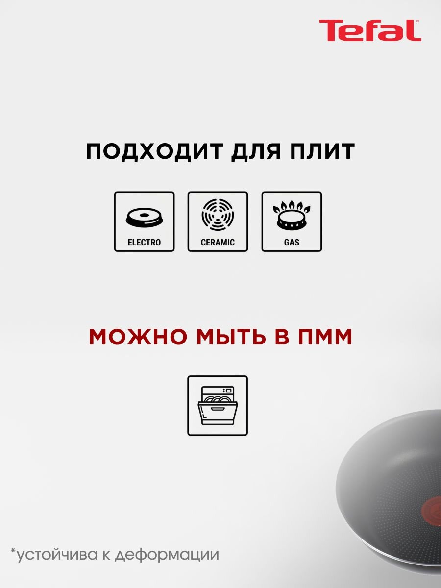 Если вы ищете, какую сковороду выбрать для быстрой и здоровой готовки, обратите внимание на антипригарный тефлоновый слой — он позволяет готовить с минимальным количеством масла, а после — легко мыть в посудомоечной машине. В отличие от аналогов с тонкими стенками или некачественным покрытием, Tefal Strength прослужит дольше и не требует специального ухода. Часто спрашивают: «Можно ли использовать для яичницы или блинов?» — да, универсальная форма и высота борта (50 мм) делают эту сковороду удобной для самых разных блюд.