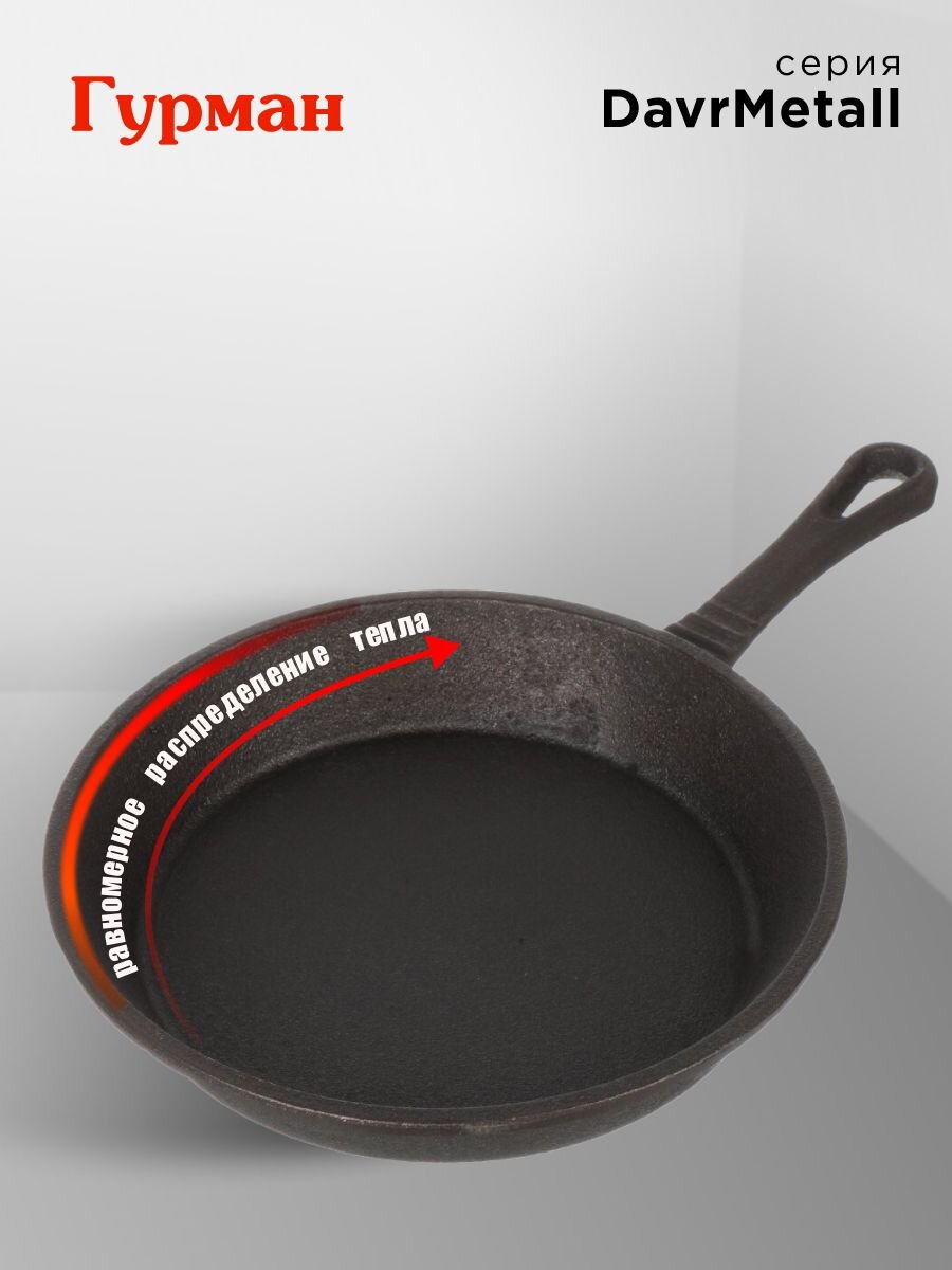 Чугунная сковорода 22 см Гурман DavrMetall для индукции: равномерный нагрев, литая ручка, срок службы 30+ лет. Лучший выбор для здорового питания.
