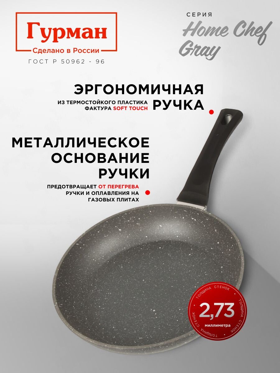 Закажите сковороду алюминий 28 см HomeChef Gray — получите надёжный инструмент для вкусной и быстрой готовки с официальной гарантией 36 месяцев и доставкой по выгодной цене.
