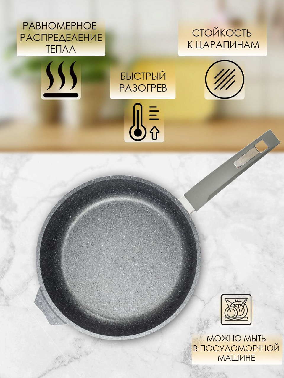 Сковорода литой алюминий 26 см Мечта Гранит 26701 — оптимальный выбор для тех, кто ценит долговечность, антипригарный эффект и универсальность приготовления без лишних хлопот.