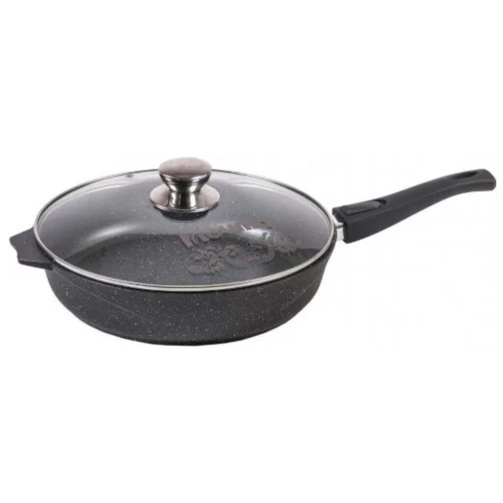 Сковорода из литого алюминия 26 см с гранитным антипригарным покрытием, крышкой и съемной ручкой — идеальное решение для дома и дачи: долговечность, универсальность, легкость ухода.