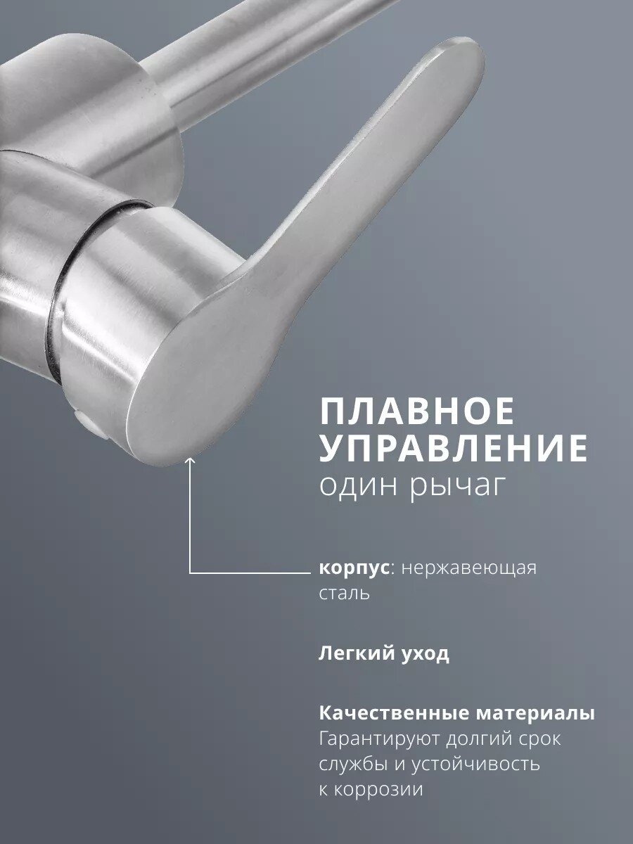 Смеситель для кухни Aqwin с гибким изливом и керамическим картриджем — надежное решение для современной кухни: долговечная нержавеющая сталь, удобство в управлении и стильный сатиновый дизайн.