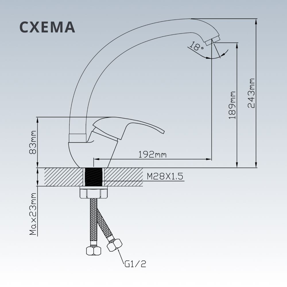 Для установки требуется одно отверстие диаметром 35 мм, стандартная подводка шланга 1/2".