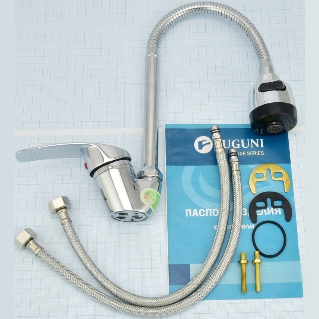 Смеситель для кухни Juguni 0402.969C: гибкий излив, хром, современный стиль — простое решение для удобной мойки и экономии воды