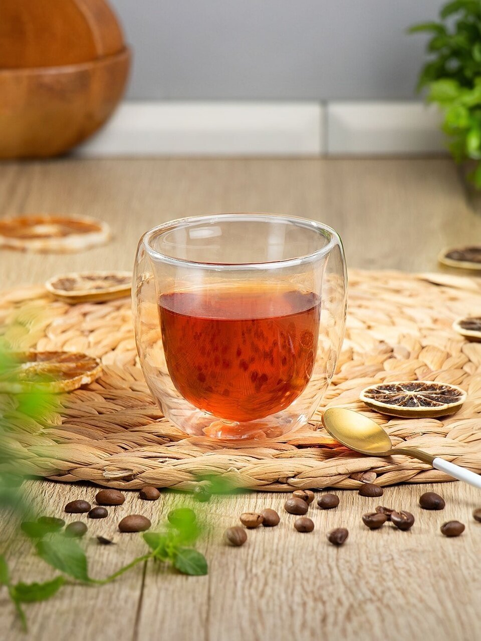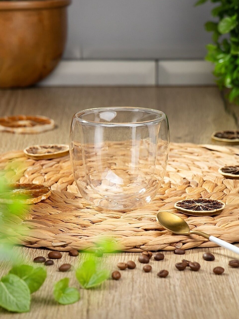 Стакан 250 мл из стекла с двойными стенками Y4-3832: стиль для кофе и воды, сохраняет температуру напитка дольше — идеальный выбор для дома и офиса.
