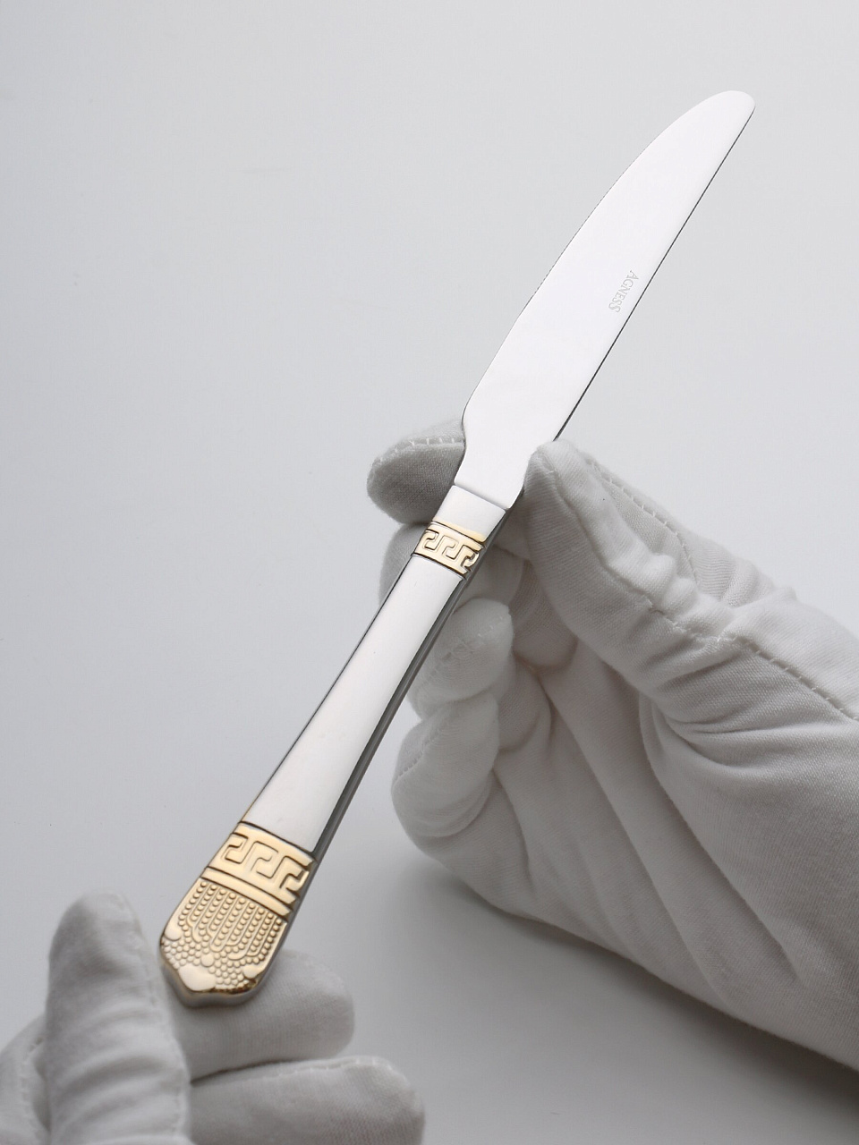 Набор столовых приборов Agness SOLE на 24 предмета — это современный выбор для сервировки стола, когда важны стиль, практичность и универсальность. Изготовлен из нержавеющей стали с золотым напылением, что обеспечивает не только эффектный внешний вид, но и устойчивость к коррозии и механическим повреждениям. Такой комплект часто ищут по запросам «купить недорого столовые приборы для дома» или «какой набор выбрать для подарка» — и Agness SOLE отвечает этим требованиям благодаря оптимальному соотношению цены и премиального исполнения.