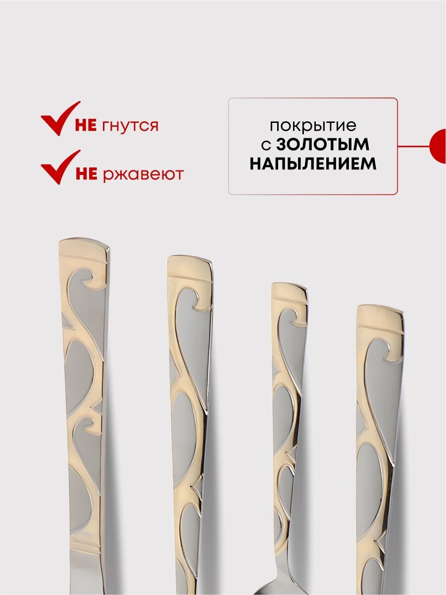 Набор столовых приборов из нержавеющей стали с золотыми ручками Y3-1020 — элегантное решение для сервировки стола на 6 персон, выгодно подчеркнёт стиль вашего дома или дачи.