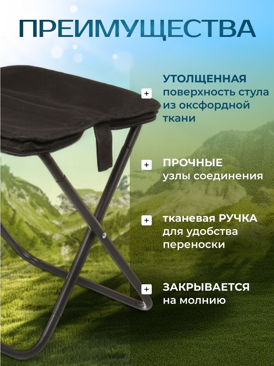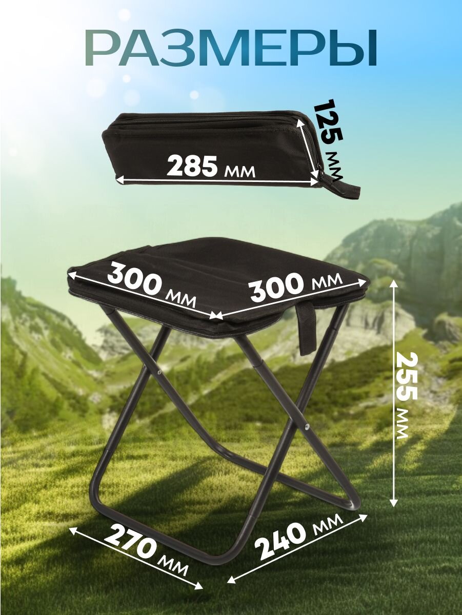 Стул складной туристический, 32х26х32 см, черный, C010176