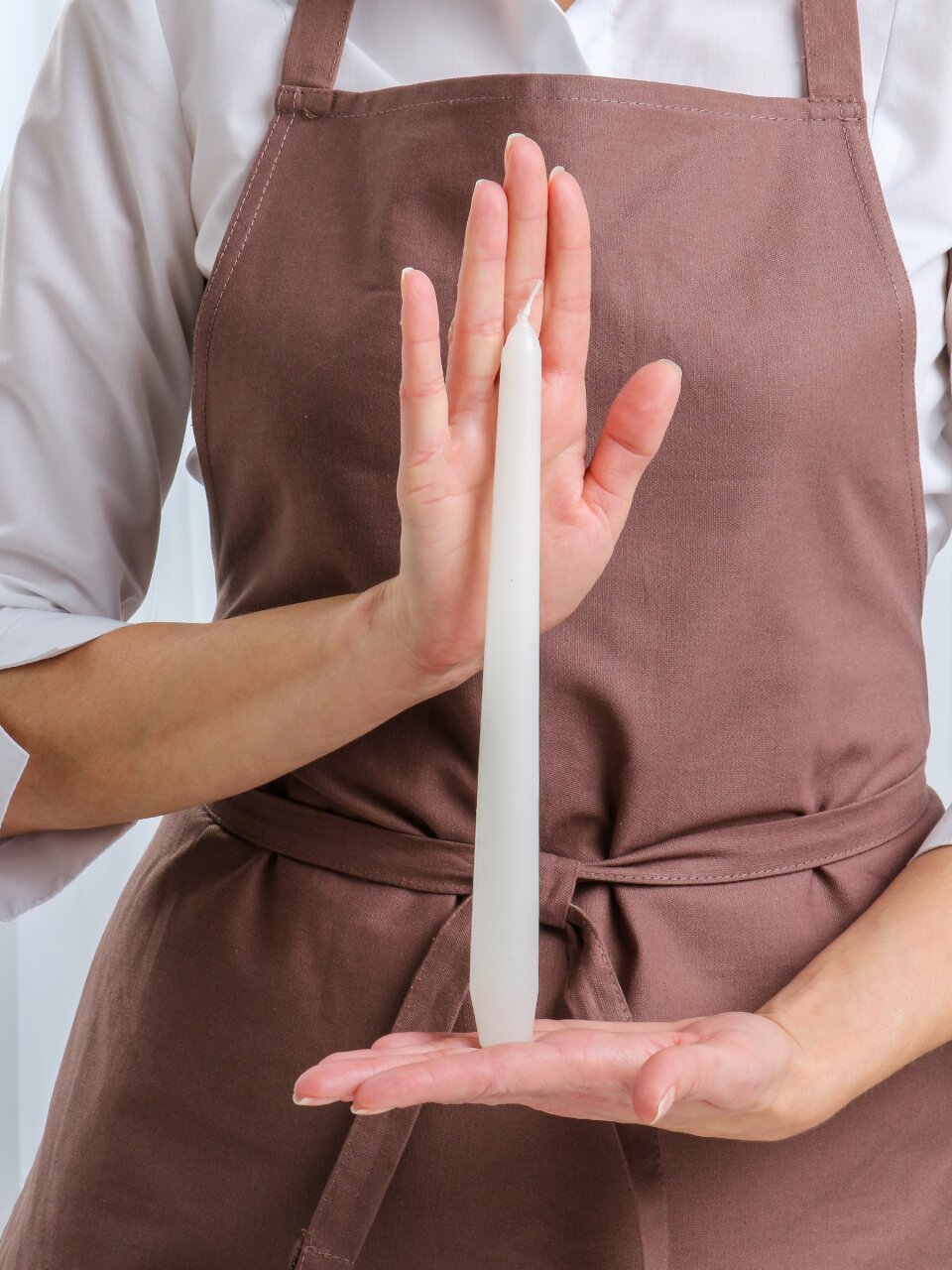 - Удобный размер 2.1х25 см, вес 90 г — подходит для стандартных подсвечников, долго горит
