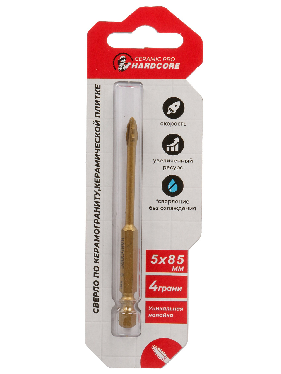 Сверло по керамограниту Hardcore Ceramic Pro d5x85 мм — точное сверление без сколов, надёжно даже на твёрдом материале. Решение для ремонта и отделки.