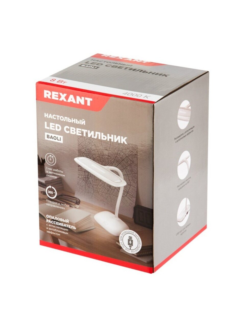 Светодиодный настольный светильник REXANT Baoli LED с гибкой поворотной стойкой позволяет самым комфортным и нужным образом осуществить освещение рабочего места.